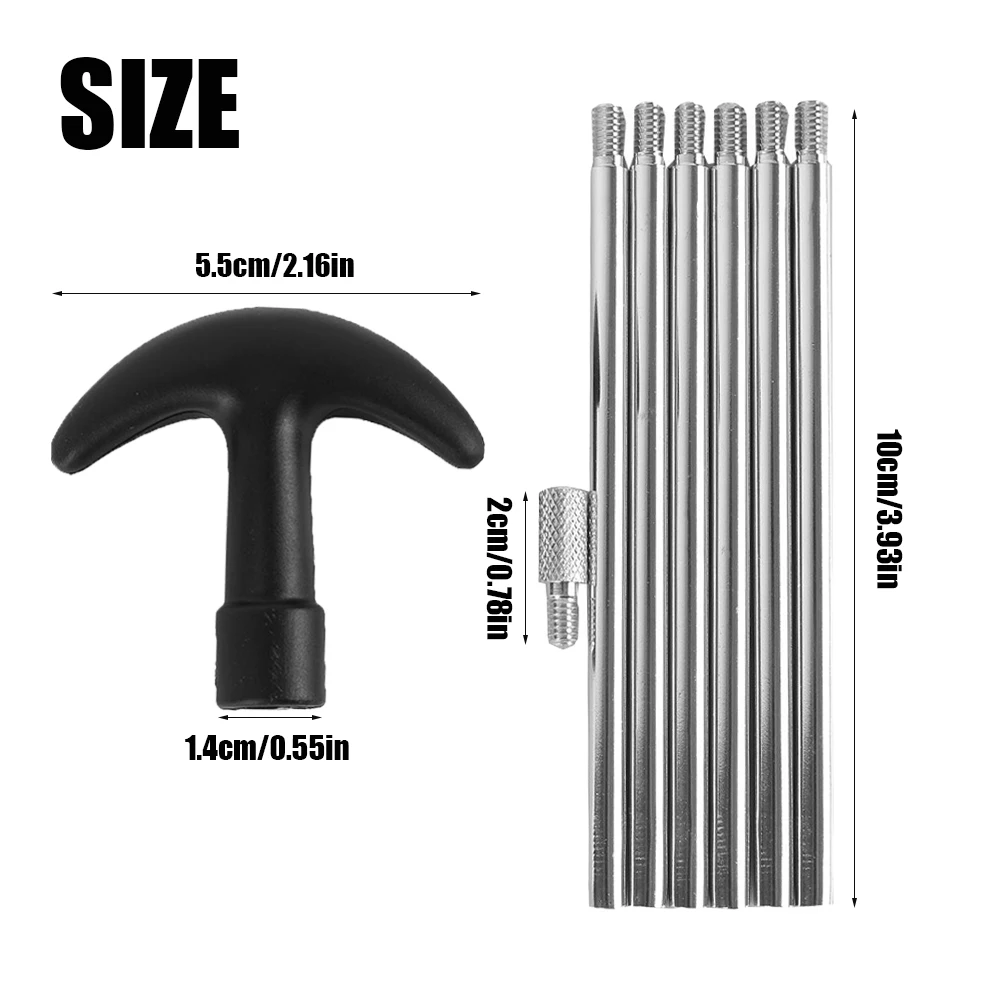 [Особенности] 1. Алюминий высокого качества стержни + пластиковый материал ручки, прочный и удобный.2. Светильник и портативный, подходит для любителей оружия.3. Он может очистить грязь без царапин поверхности пистолета.4. Многофункциональные, различные инструменты имеют различные цели.5. Резьба: 8-32,, которая может подойти для всех наших кистей, jag, патчей, кабеля. [Характеристики] 1. Вес: 52 г2. Размер стержня: 5*100 мм3. Материал: алюминиевые стержни + пластиковая ручка [Посылка включает в себя] Ручка * 1Стержни * 1Алюминиевый адаптер * 1