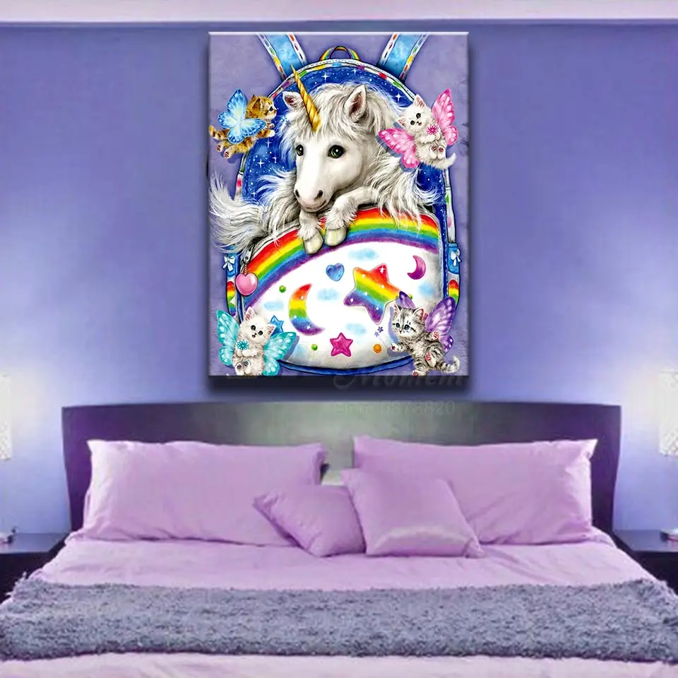 Когда-либо в настоящий момент Toile алмазов картина милый единорог Радуга рюкзак искусство Алмазная Вышивка Полный плацу DIY холст комплект 5L1097