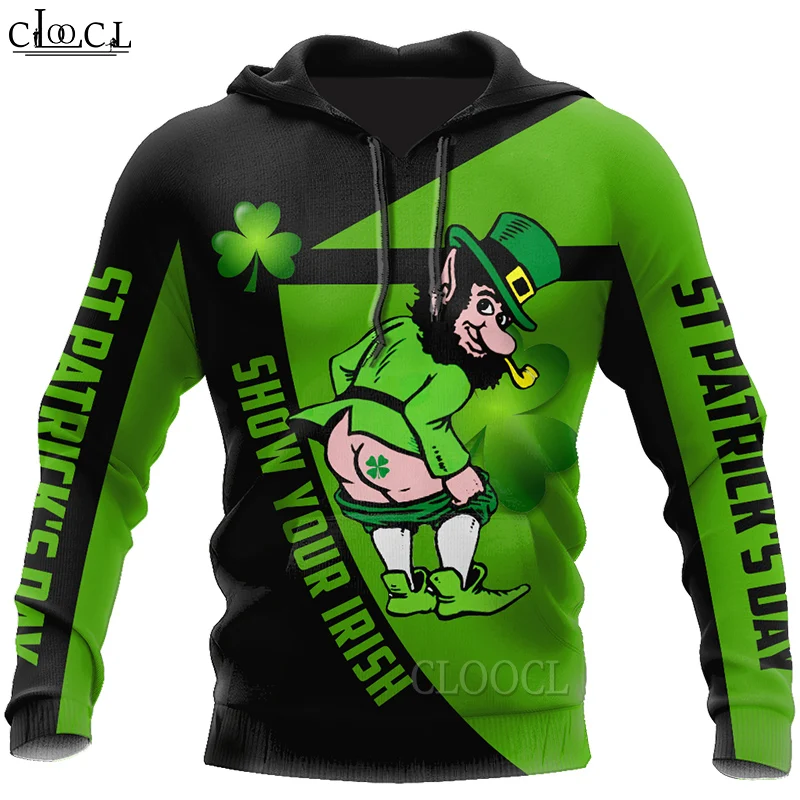 2021 модная толстовка с капюшоном новейший популярный День Святого Патрика ирландскийМужская толстовка с 3D принтом, Осенний пуловер с длинными рукавами в стиле хип-хоп