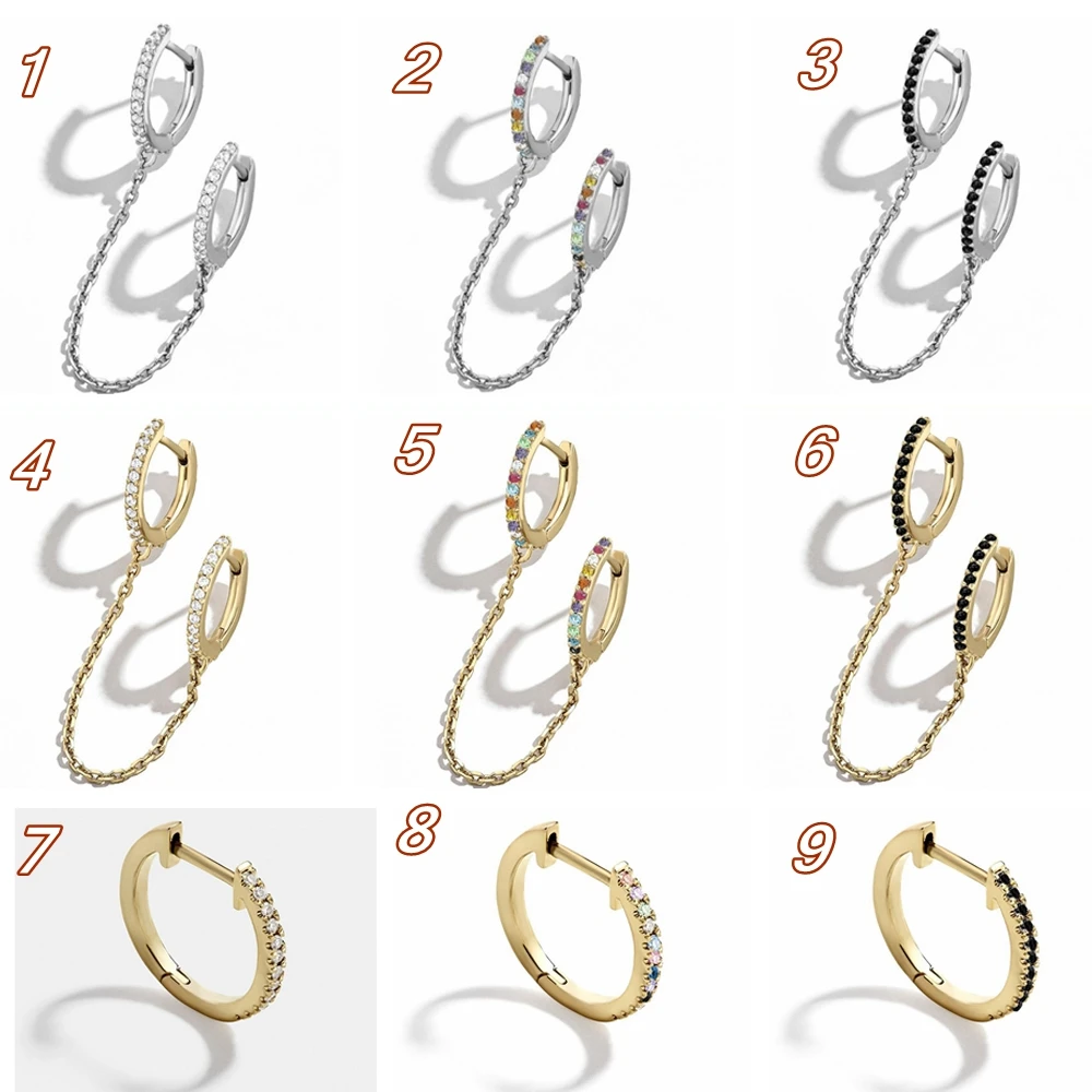 Серьги-кольца с двойным отверстием, подвеска в виде цепочки с цирко...