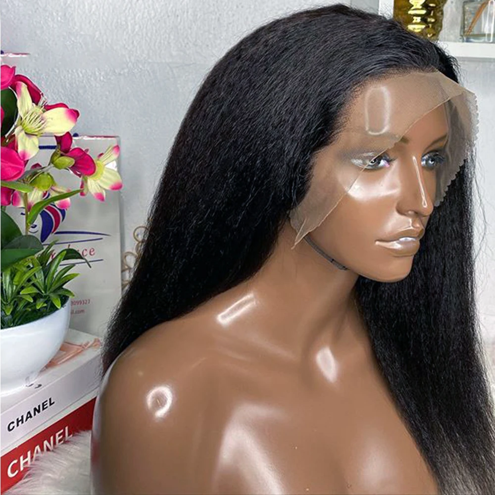 Синтетический кудрявый прямой парик на сетке спереди длинный Yaki п...