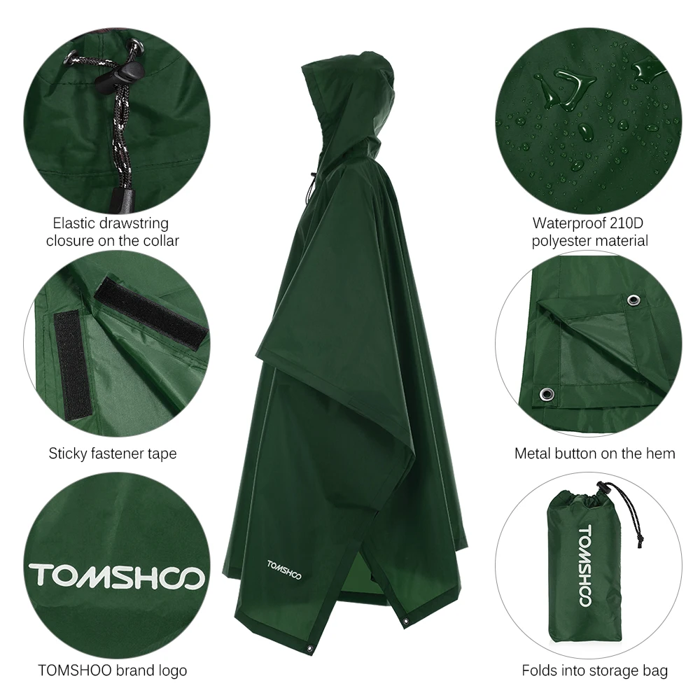 Дорожное пончо TOMSHOO, многофункциональный легкий дождевик с капюшоном, пончо для пеших прогулок и велоспорта, дождевик, коврик для палатки