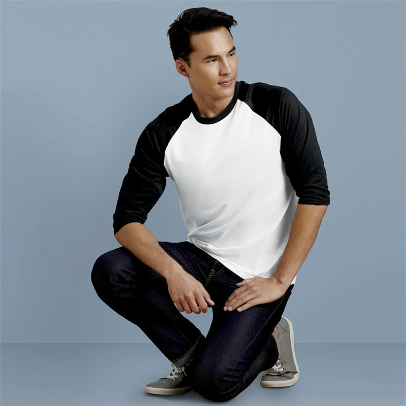 Мужская футболка с рукавом 3/4, весна-лето, Повседневная футболка с круглым вырезом, 100% хлопок, уличная футболка, реглан, Джерси, футболки размера плюс XXL