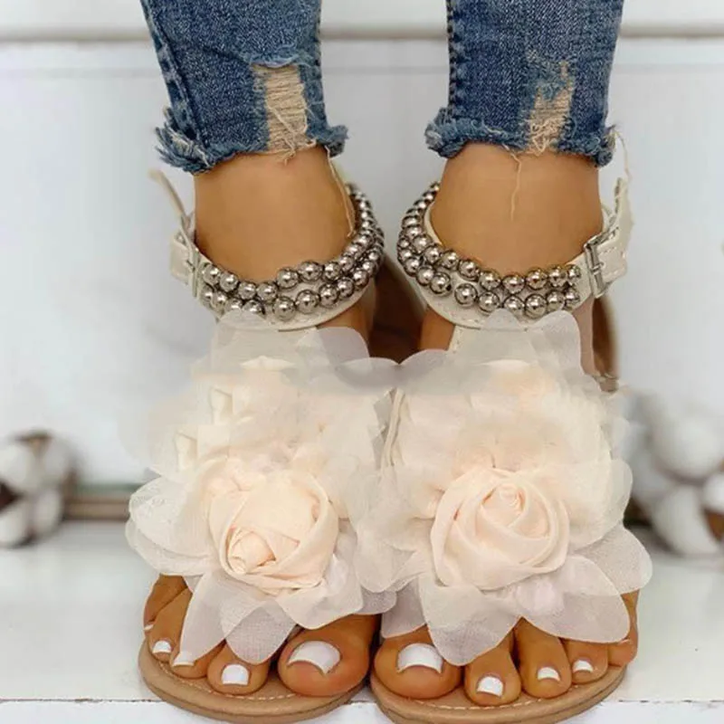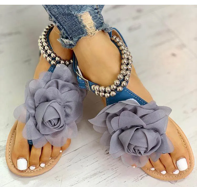 Женская обувь; Сандалии-гладиаторы в стиле ретро; Женская обувь на плоской подошве; Женские сандалии на платформе; Модная повседневная женская обувь на плоской подошве, украшенная цветами и бусинами