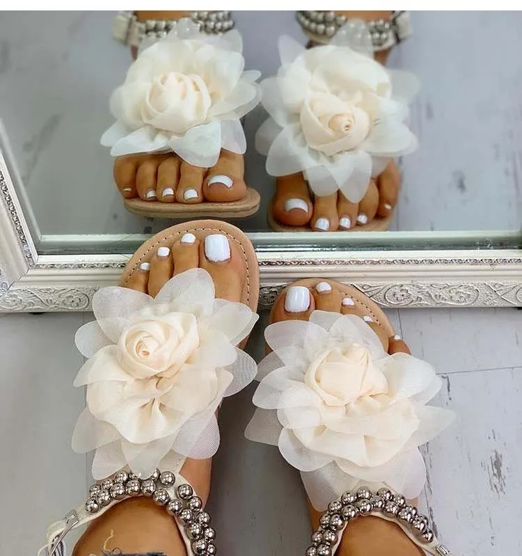 Сандалии женские с цветами, мягкие прочные босоножки без застежки, ...