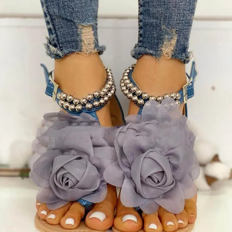 Женская обувь; Сандалии-гладиаторы в стиле ретро; Женские босоножки на плоской платформе; Модная повседневная женская обувь на плоской подошве с цветами и бусинами