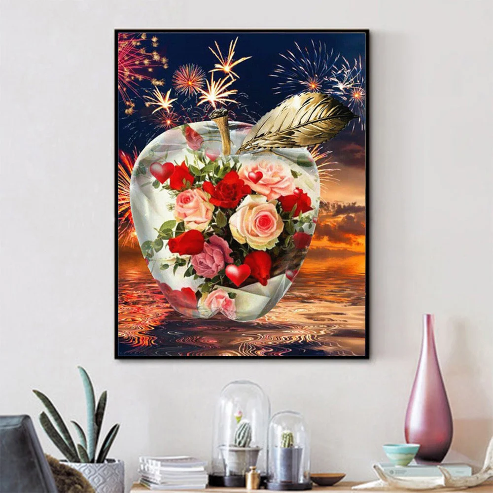 Алмазная живопись HUACAN с яблоком, 5D сделай сам, вышивка мозаикой, пейзаж, вышивка крестиком, украшение для стен