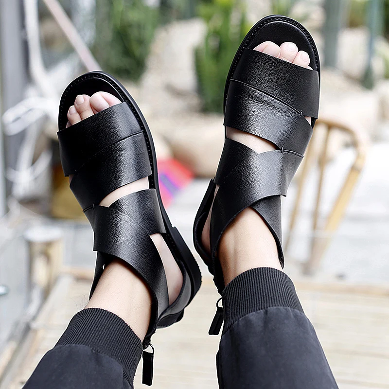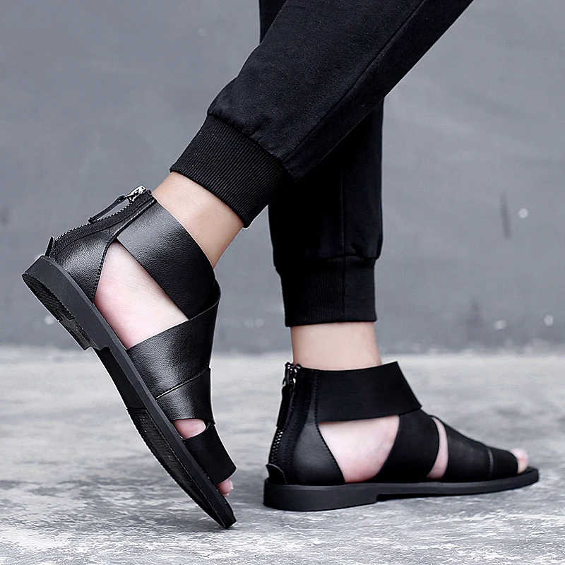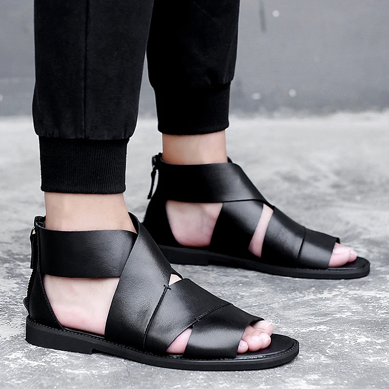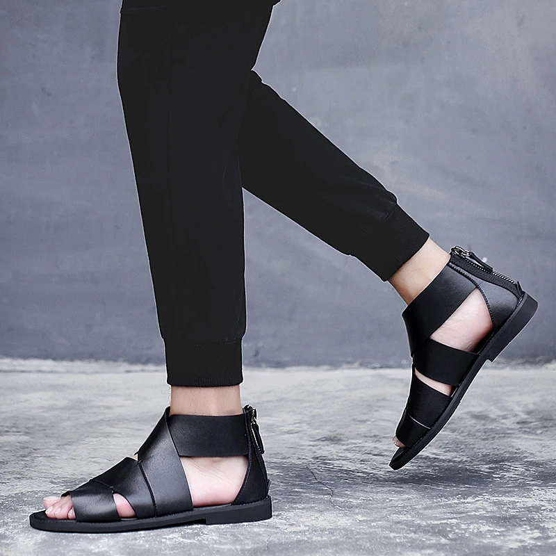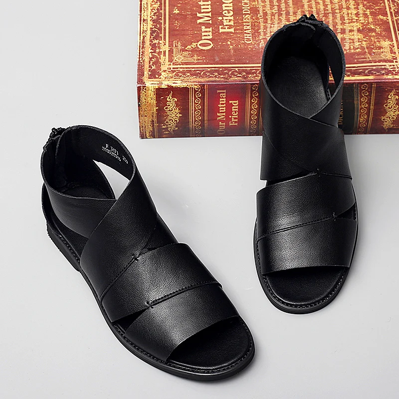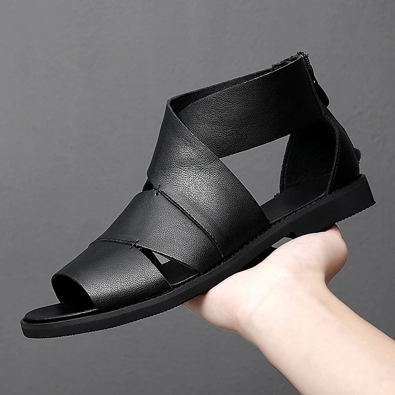 Сандалии мужские из натуральной кожи, летняя уличная Удобная Повседневная пляжная обувь, римские сандалии