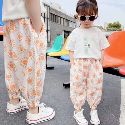 Новинка 2022 года, весенне-летние леггинсы для мальчиков и девочек тонкие противомоскитные штаны для малышей хлопковые шаровары с рисунком героев мультфильма детская свободная повседневная одежда