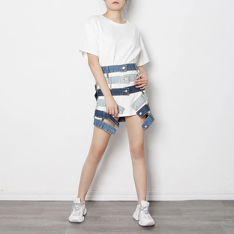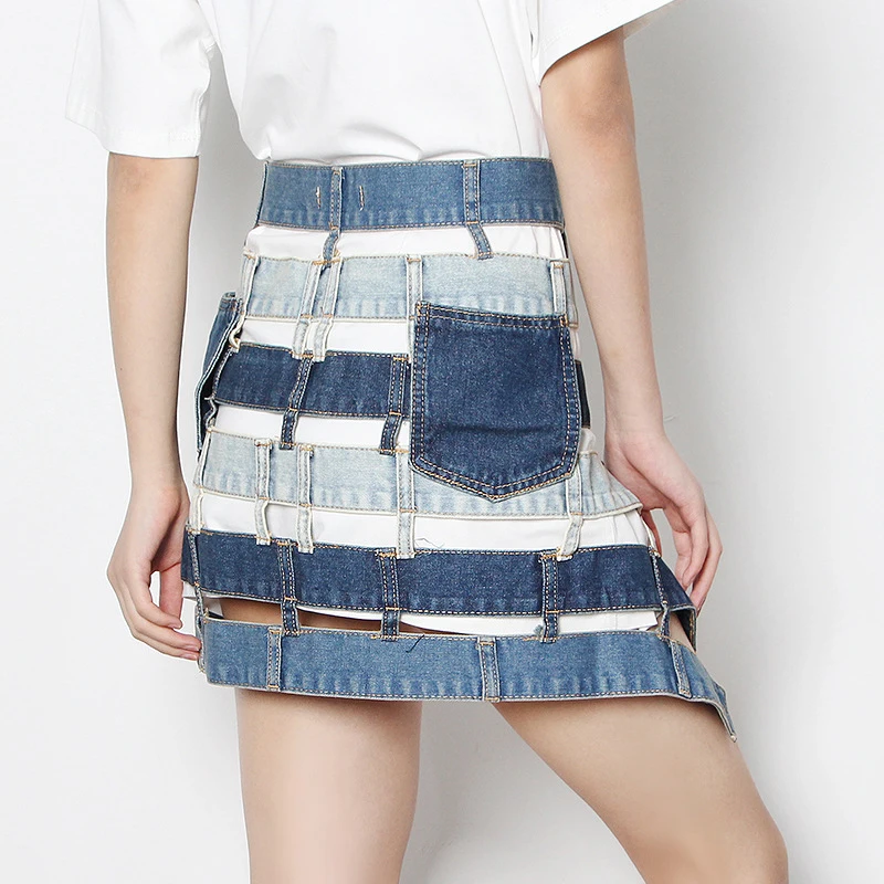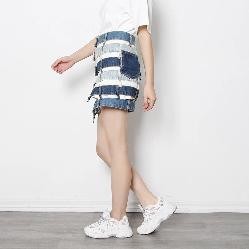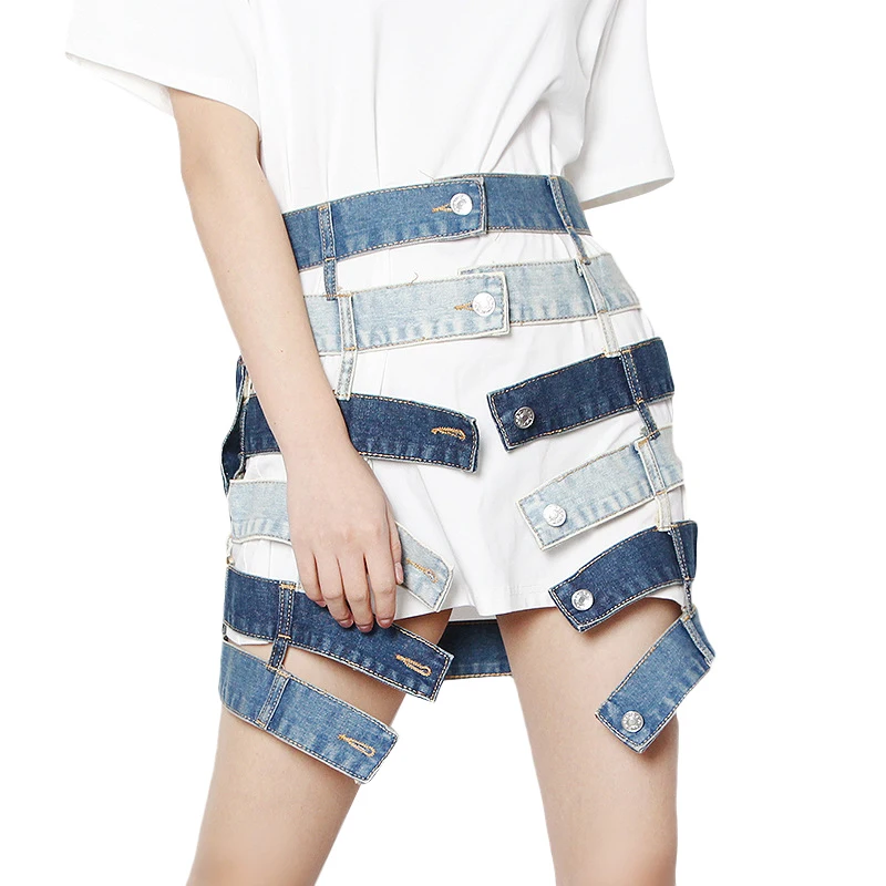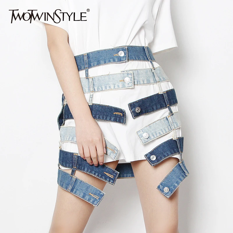 Женская джинсовая юбка TWOTWINSTYLE, черная повседневная юбка составного кроя с высокой талией и карманами, 2019