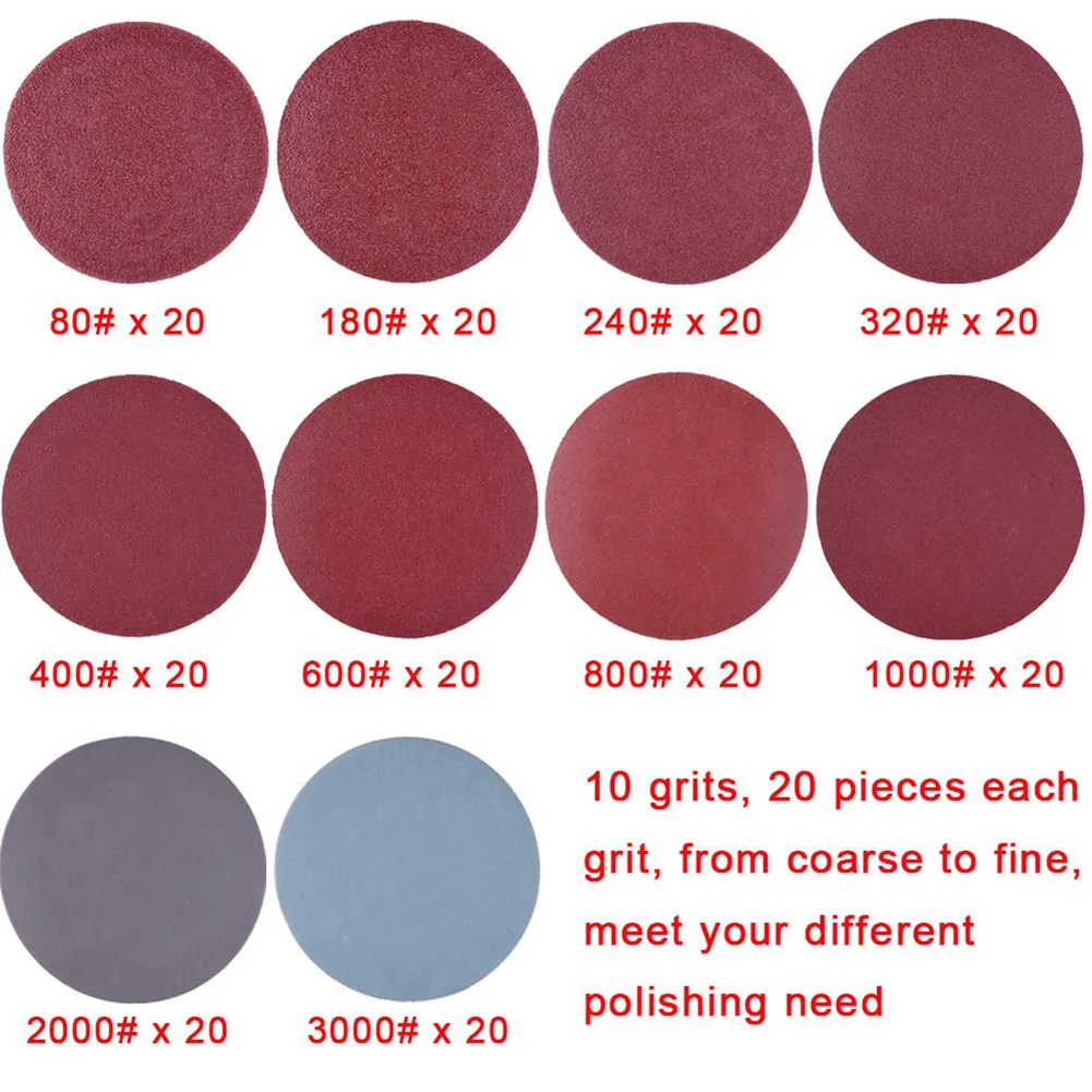 * 1. Практичный набор включает в себя 200 шт. шлифовальных дисков, по 20 шт. каждый для зернистости 80/180/240/320/400/600/800, чтобы удовлетворить ваши различные потребности в полировке.