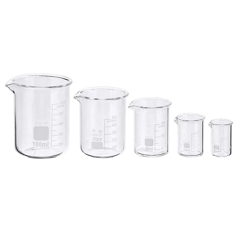 5Pcs лабораторные Стекло стакан набор 5102550100 мл Стекло лабораторная измерительная чашка Стекло посуда химический эксперимент лабораторное оборудование