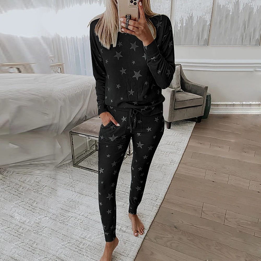 Женский трикотажный пижамный комплект, домашняя одежда для сна