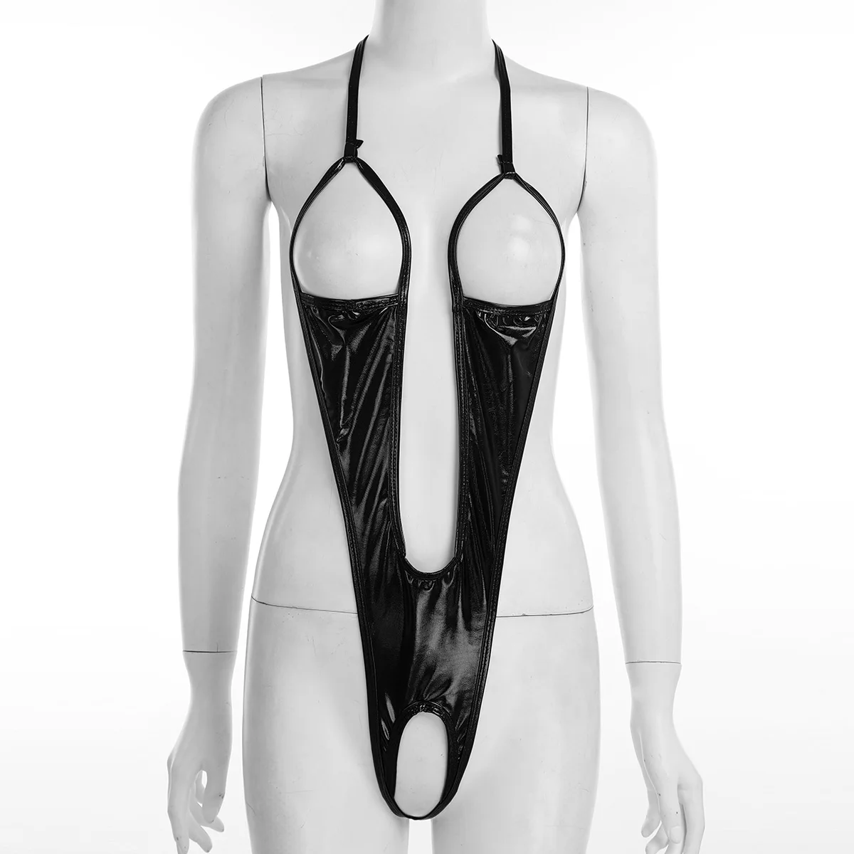 Для Женщин, Сексуальное белье, сексуальное Эротическое белье боди купальник из искусственной кожи открытый бюст с низким вырезом на спине с открытым Croch одежда для сна ночная рубашка с Тедди порно костюм