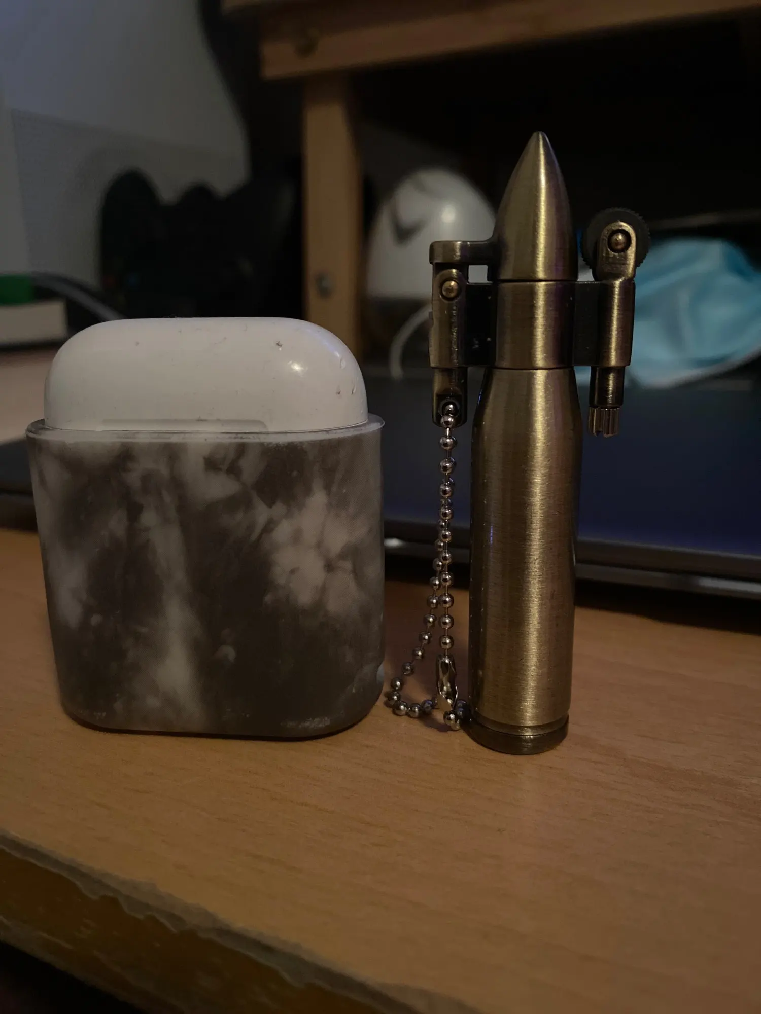 Красиво сделанная Зажигалка в виде пули и картриджа, ее легко заполнять и управлять, очень доволен им