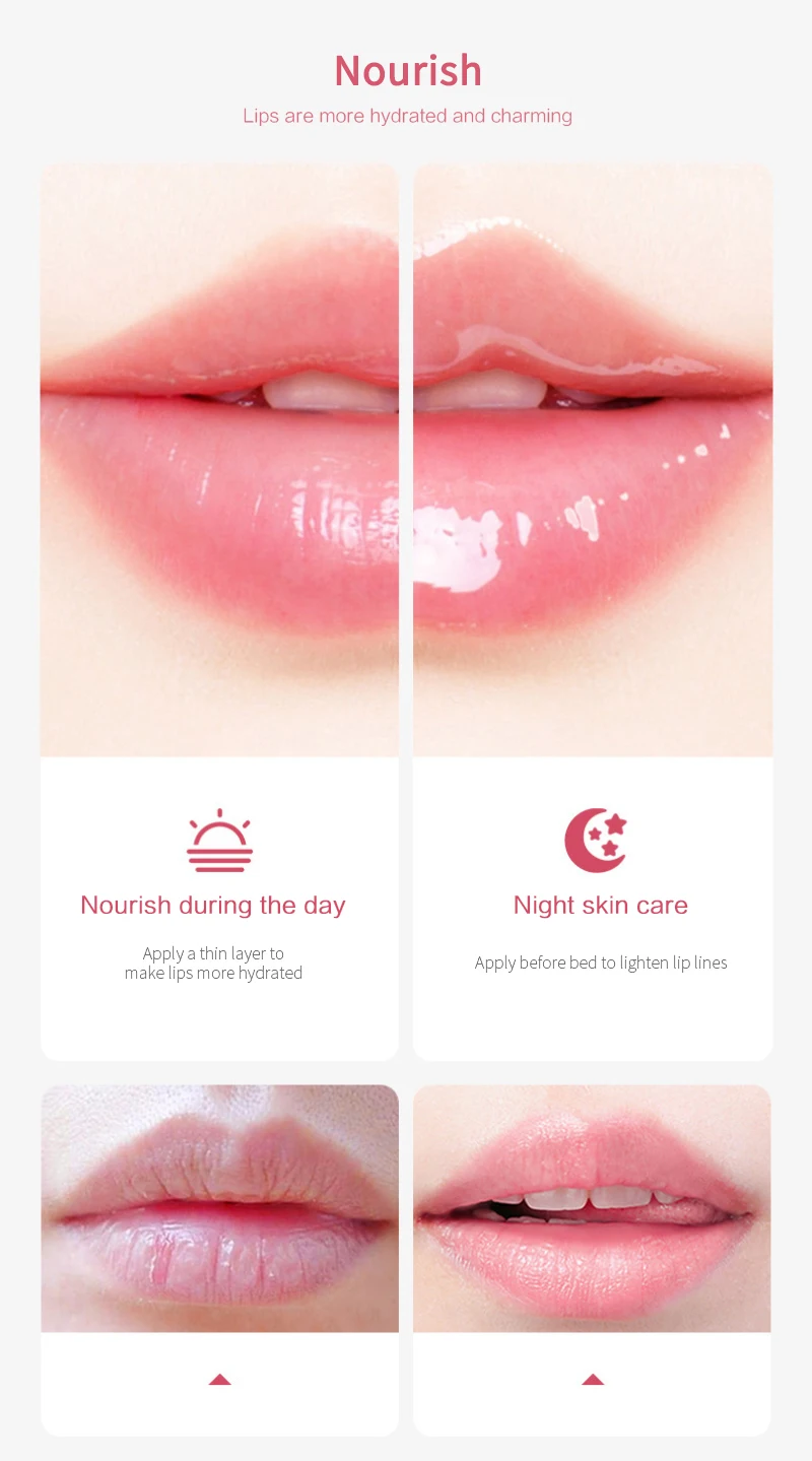 С натуральными ингредиентами, витамин С-богатая ягода смешанный комплекс может устранить сухую, чешуйчатую омертвевшую кожу на губах в ночное время, тем самым делая губы гладкими на следующее утро.