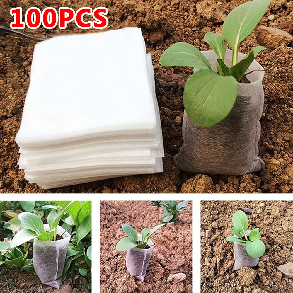 100 шт. нетканый мешки для растений рассада детскую мешок-горшок для цветов сад биоразлагаемая ткань выращивать горшки eco-friendly посадки сумки горшки