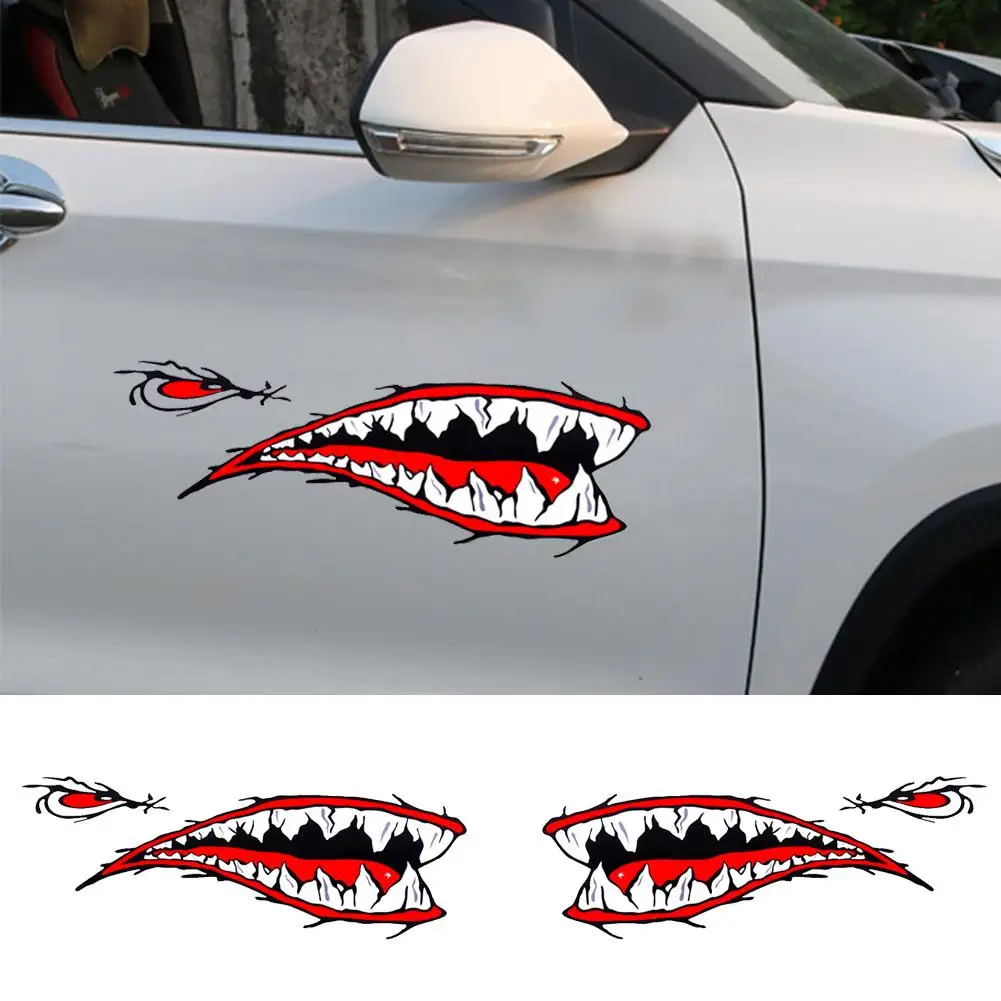 2 шт., наклейки на зубы акулы, водонепроницаемые наклейки для рыбалки, лодки, прочные наклейки, домашний декор для окна автомобиля