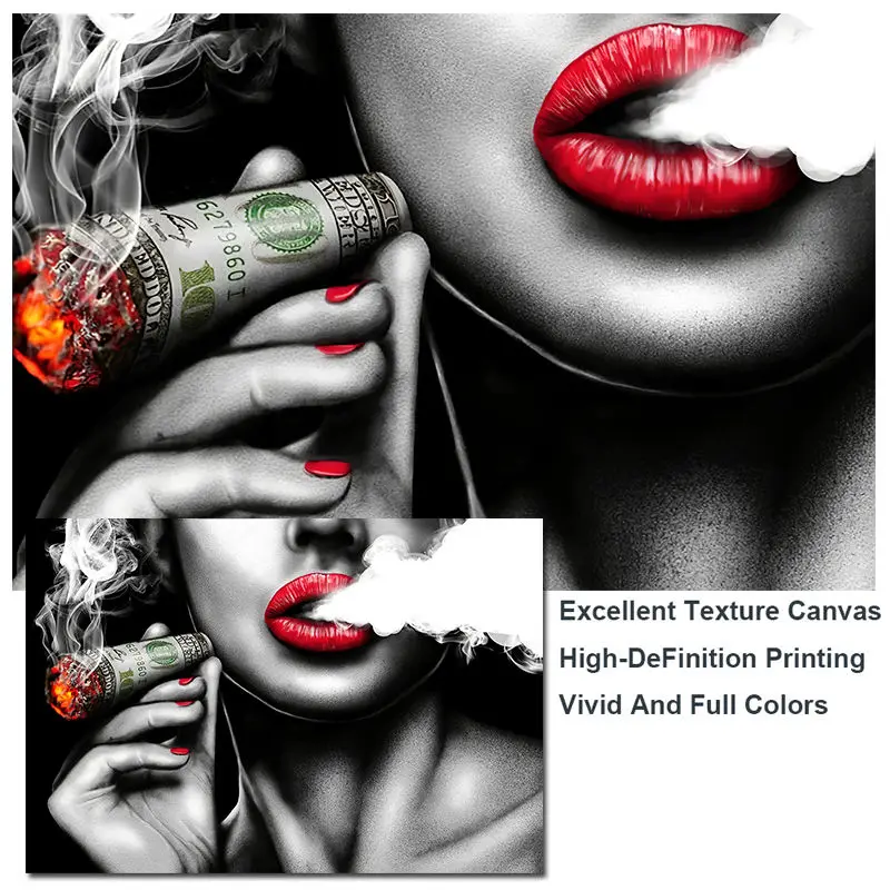 Красные губы курительные персонажи винтажная Картина на холсте женские постеры и принты настенное искусство для гостиной спальни Куадрос без рамки