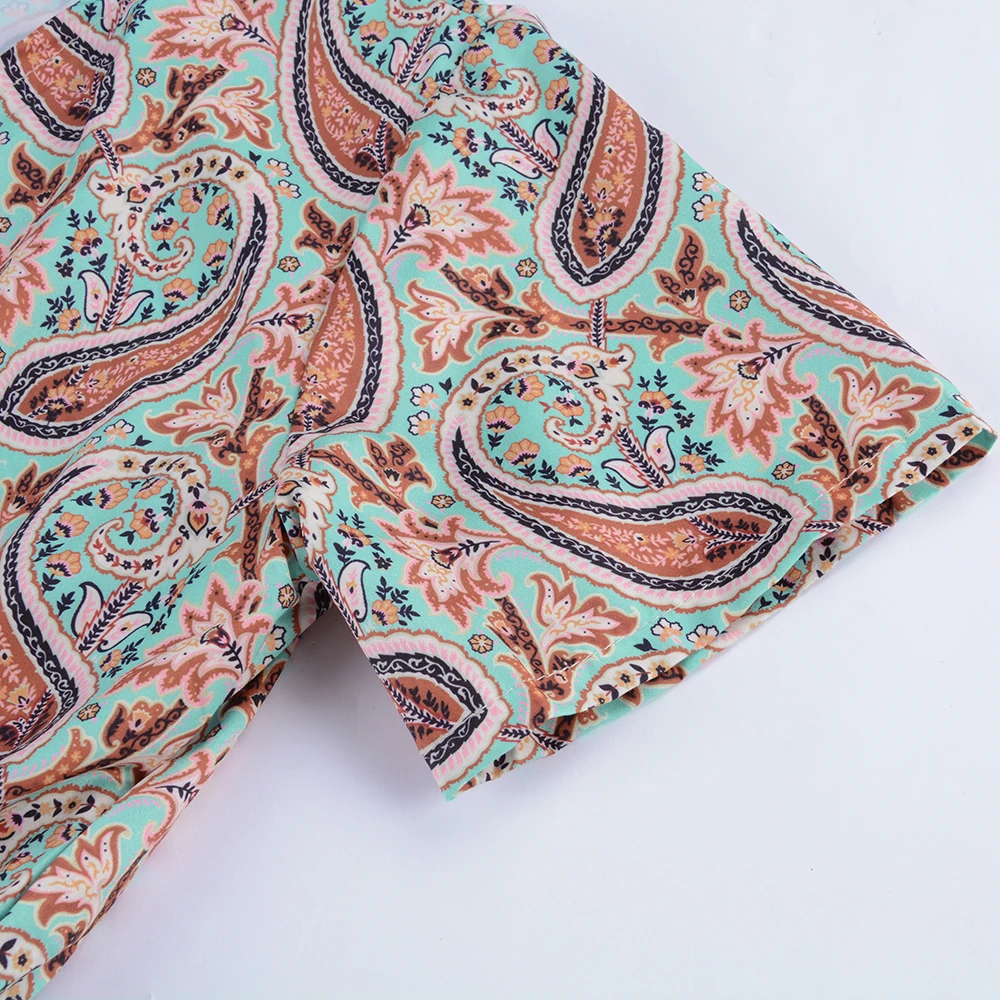 Платье женское пляжное с V-образным вырезом, пикантный модный длинный свободный сарафан в стиле бохо с цветочным принтом и коротким рукавом, с разрезом, вечерняя одежда, на лето