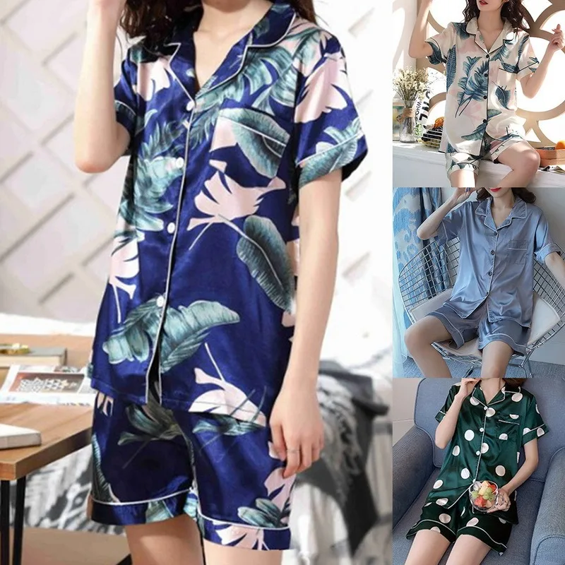 Шелковая пижама с коротким рукавом, Весенняя Пижама, женские летние...