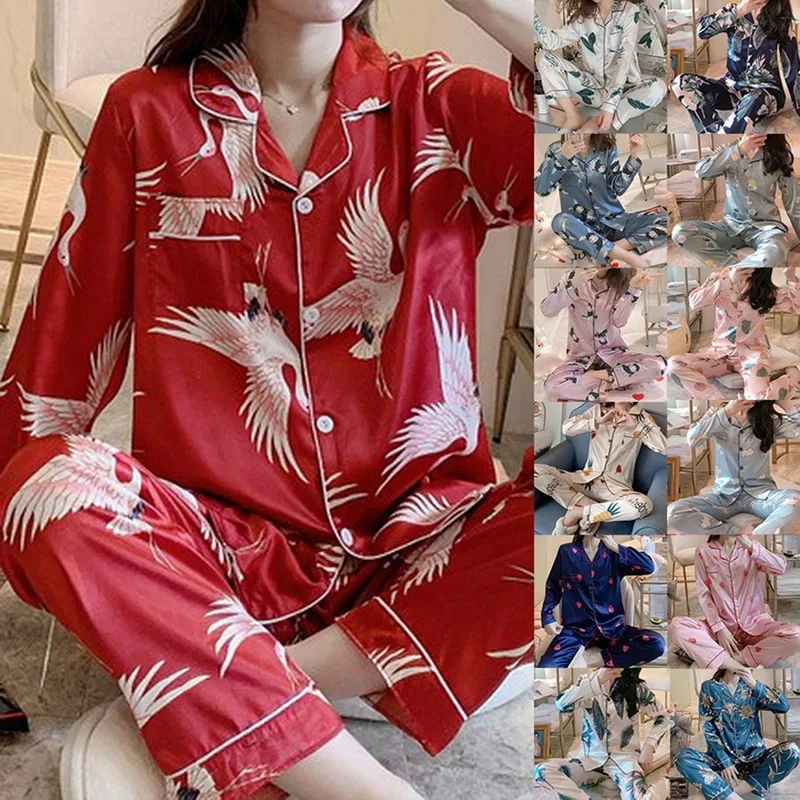 Женский Атласный пижамный комплект, элегантная повседневная одежда ...