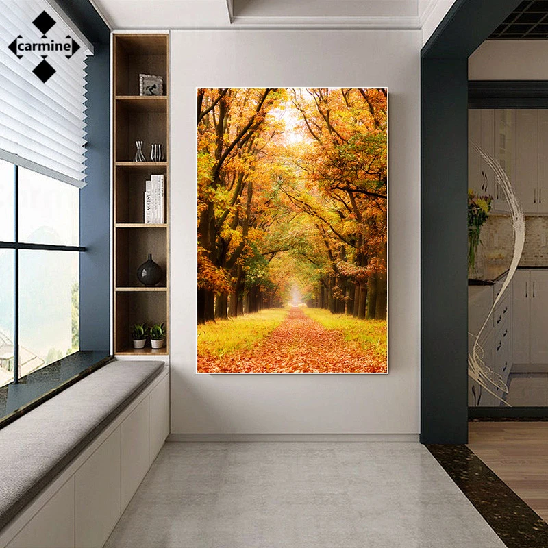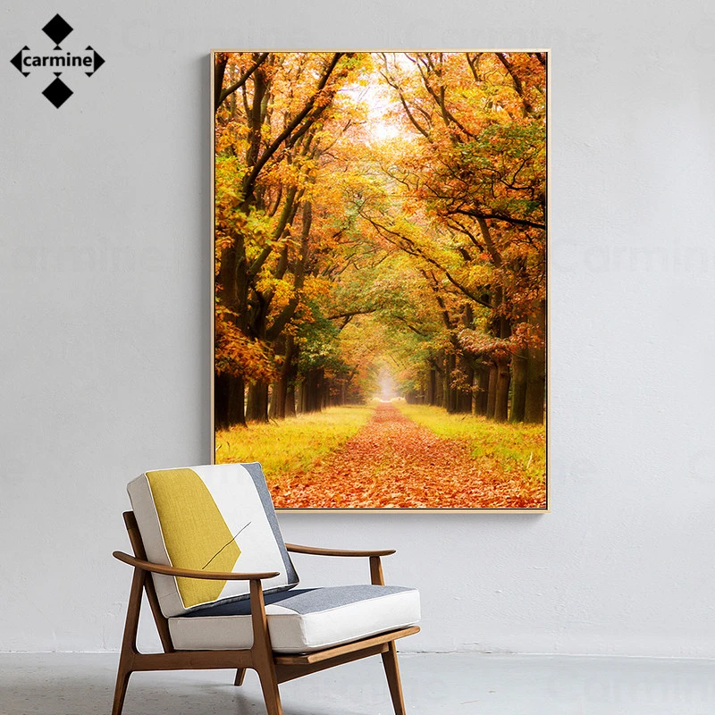 Настенная живопись с изображением золотого кленового леса, постер с природным ландшафтом и печать, красивый Осенний пейзаж, холст для украшения