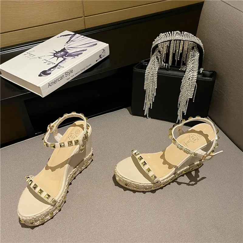 NIUFUNIженские босоножки на танкетке с заклепками; Туфли-лодочки на...