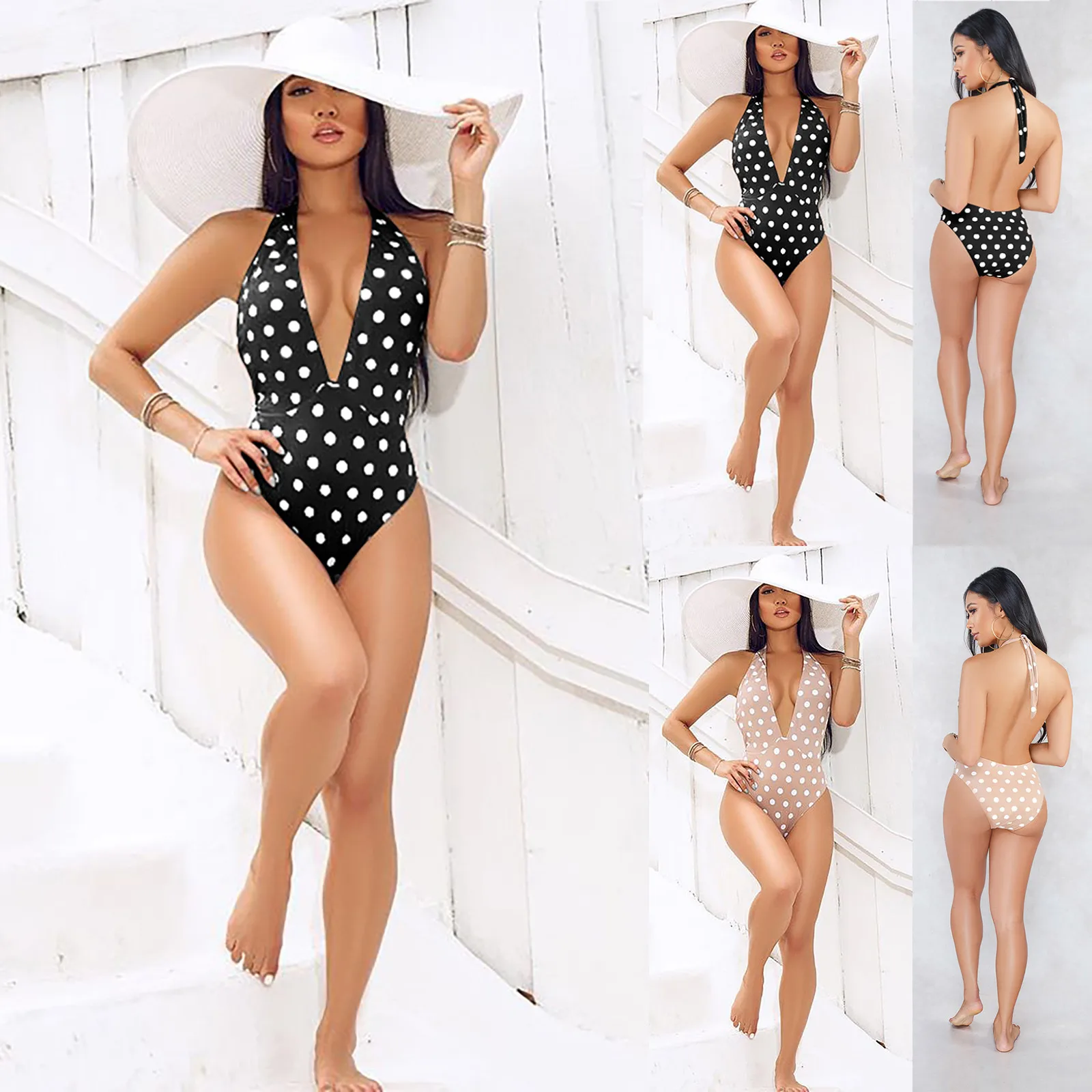 Летний слитный Купальник, пикантный Купальник в горошек, Купальник с открытой спиной на бретелях, микро-бикини, Купальник, женский Купальник