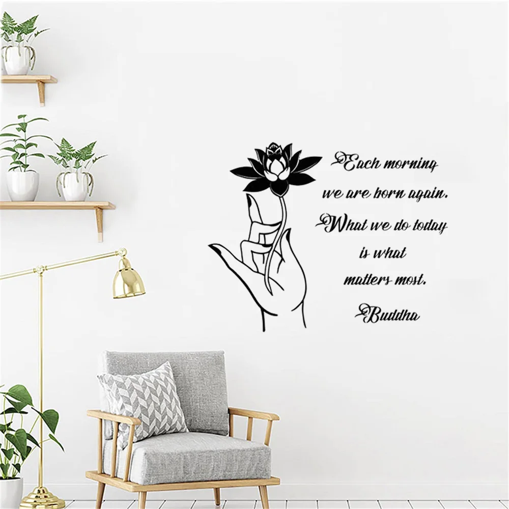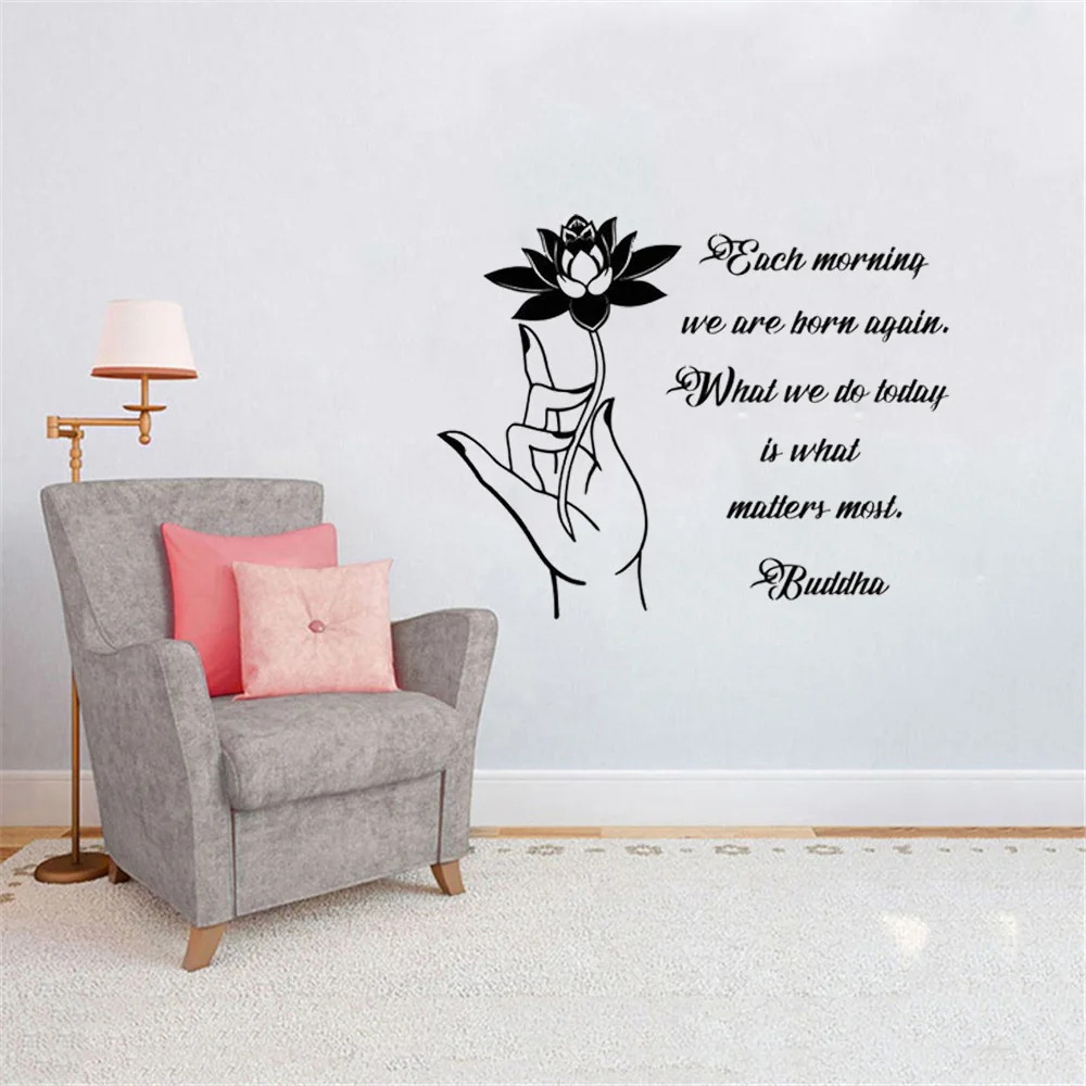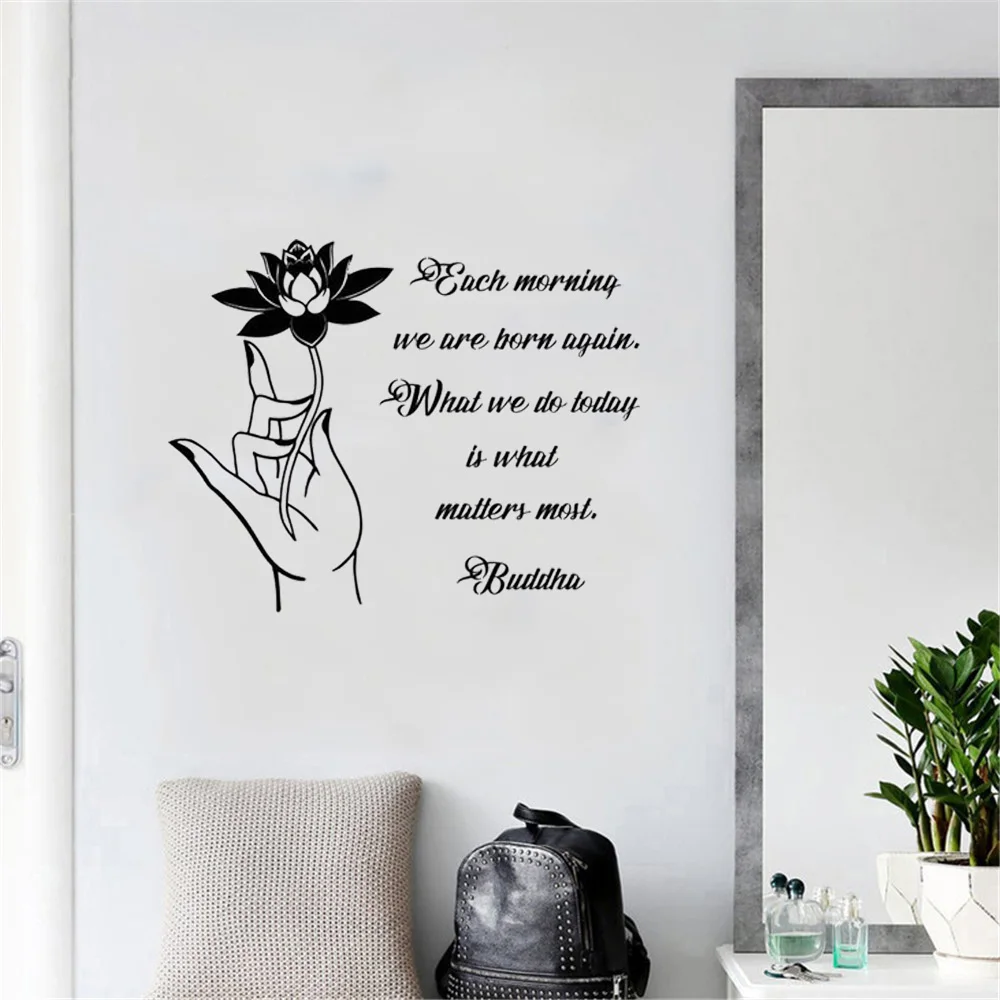Наклейка на стену каждое утро, Будда, цветок лотоса, Йога, дзен, медитация, богемный, Восточное искусство, Виниловая наклейка для спальни