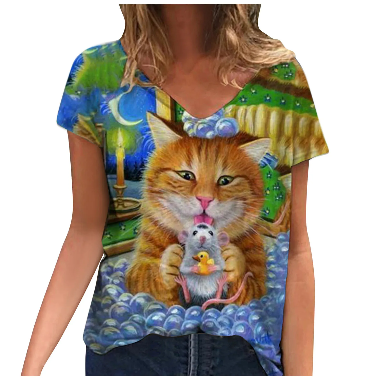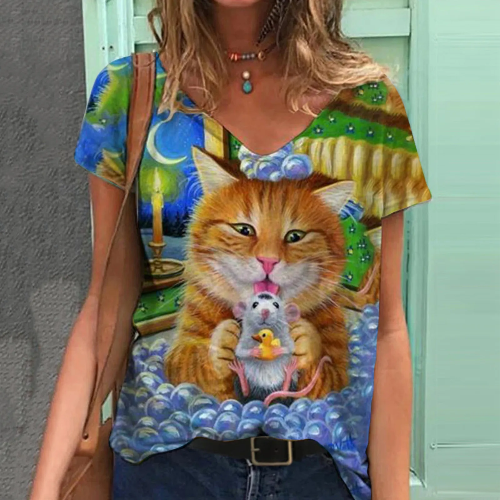 Женская футболка с рисунком животного, летняя футболка с 3D-принтом...