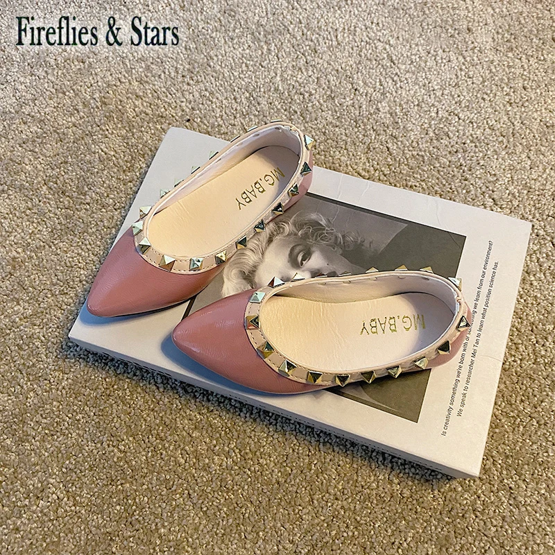 Демисезонная обувь для девочек, детская обувь на плоской подошве, Брендовая обувь, детская обувь, модные лакированные кожаные боковые заклепки от 3 до 12 лет