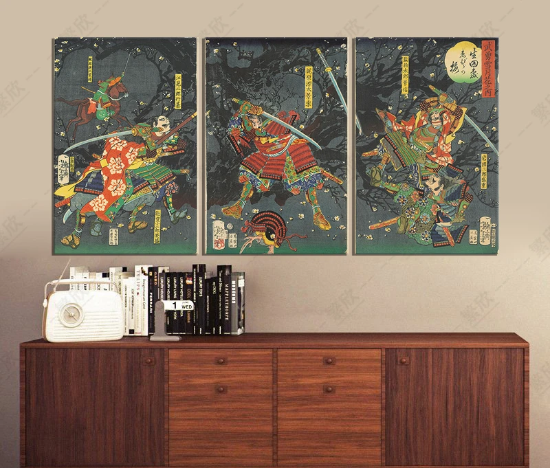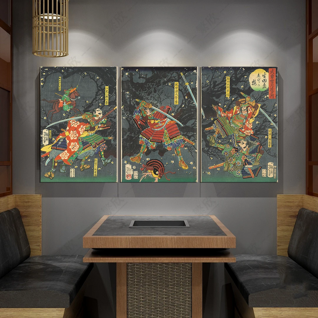 3 шт. серия укиё-э японских самураев, пластичный монтаж, Винтаж японский Стиль художественный Принт Холст Настенный декор плакат на стену стены Картины абстрактные азиатского искусства