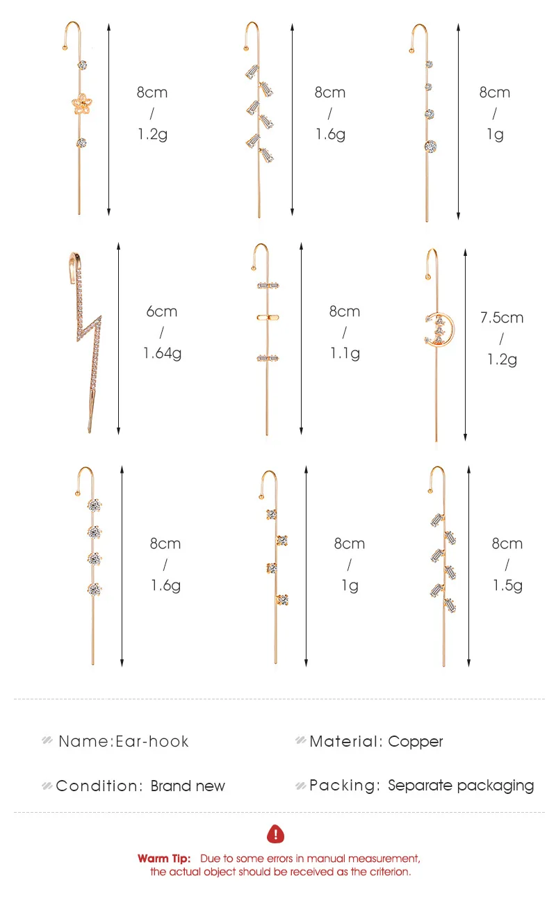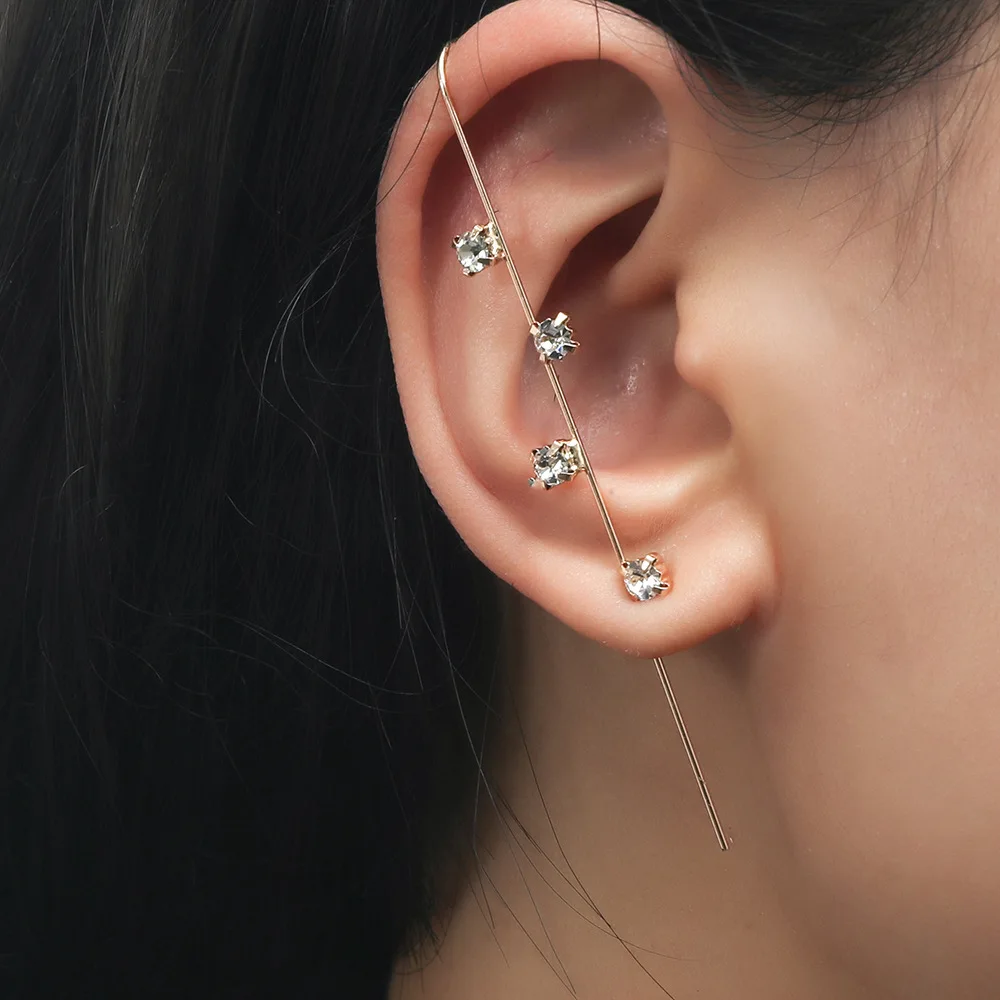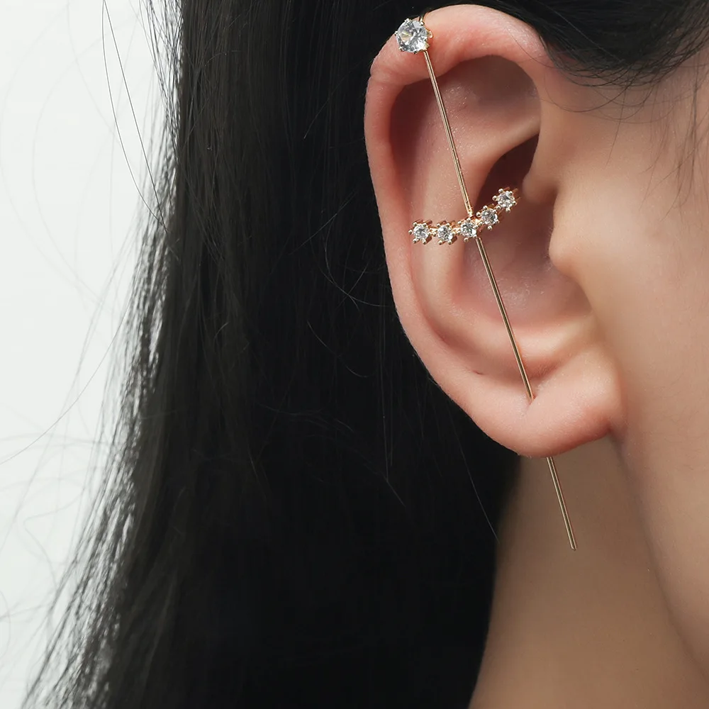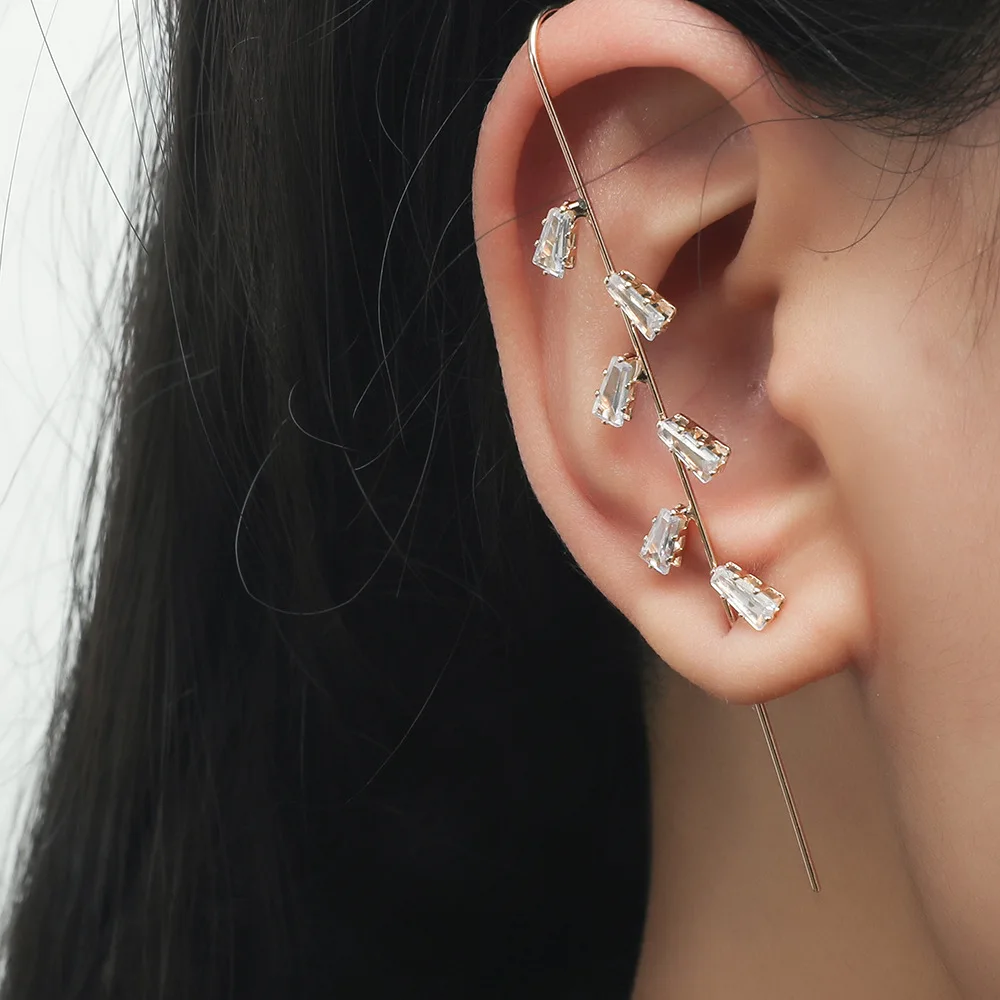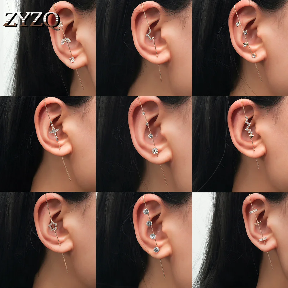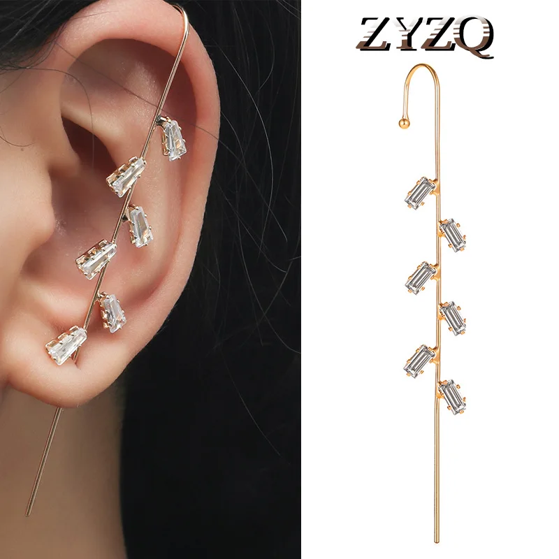 Серьги-гвоздики ZYZQ с кристаллами женские, свадебное украшение для Пирсинга Ушей в стиле ретро с диагональю ушной раковины в стиле хип-хоп, ювелирное изделие для ушей, обмотка с крючком, 1 шт.