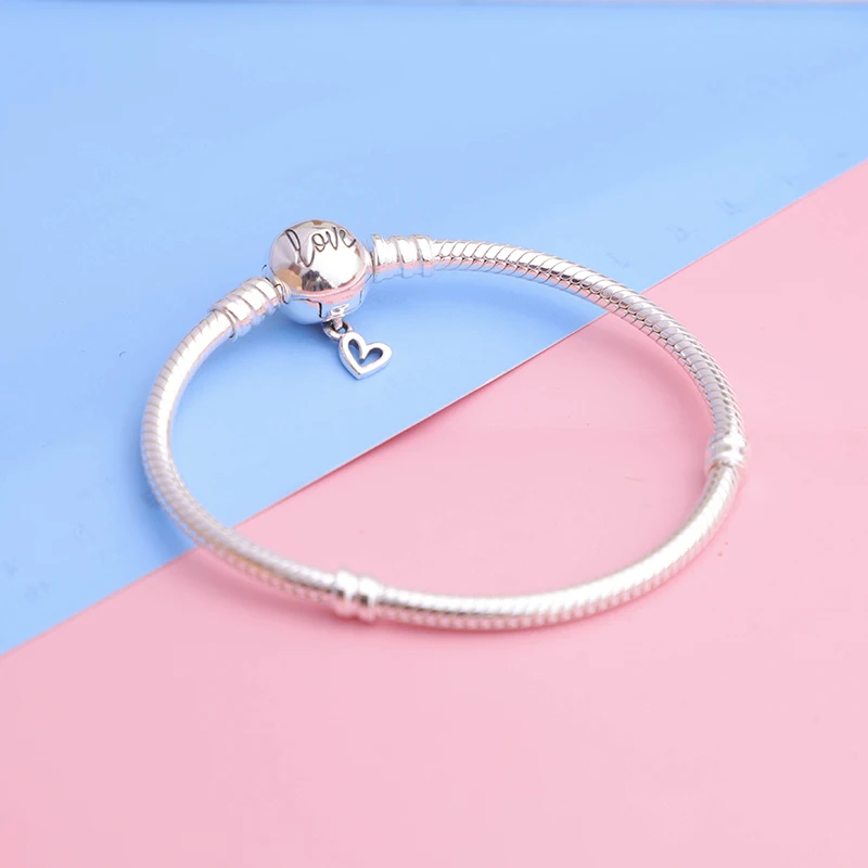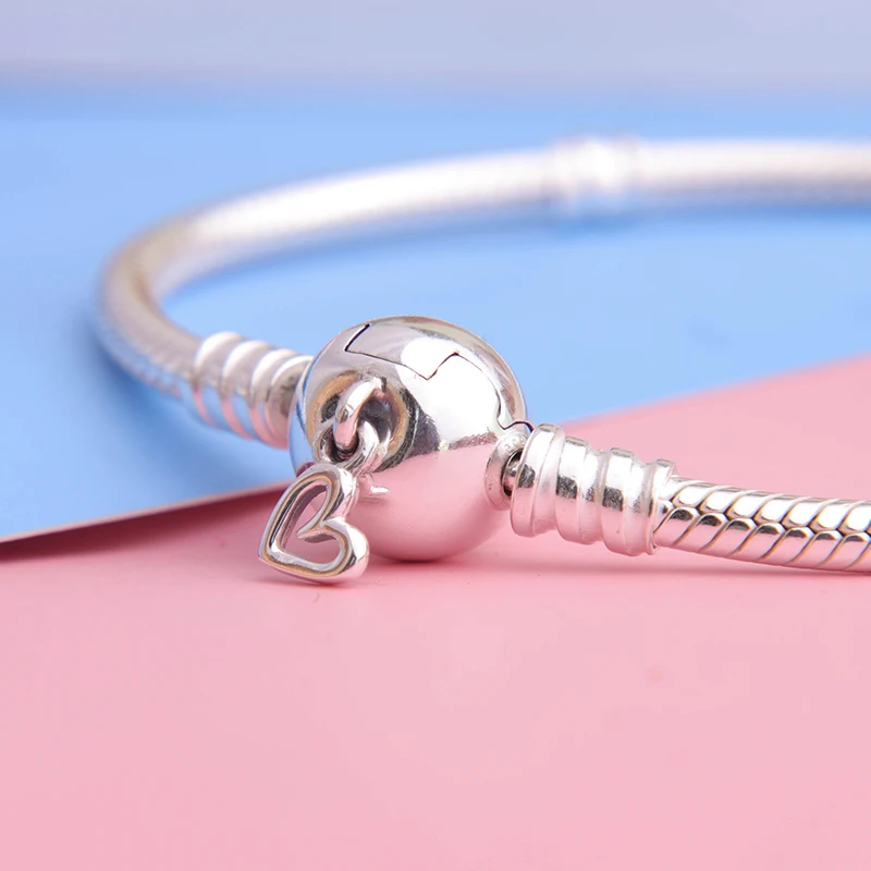 Новинка, змеиная цепочка с застежкой в форме сердца, серебряные моменты, браслеты для женщин, подходят для шармов, бусины, ювелирные изделия сделай сам
