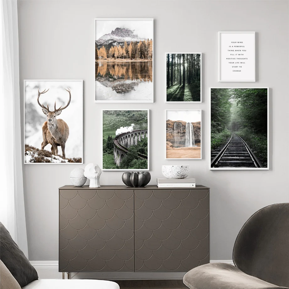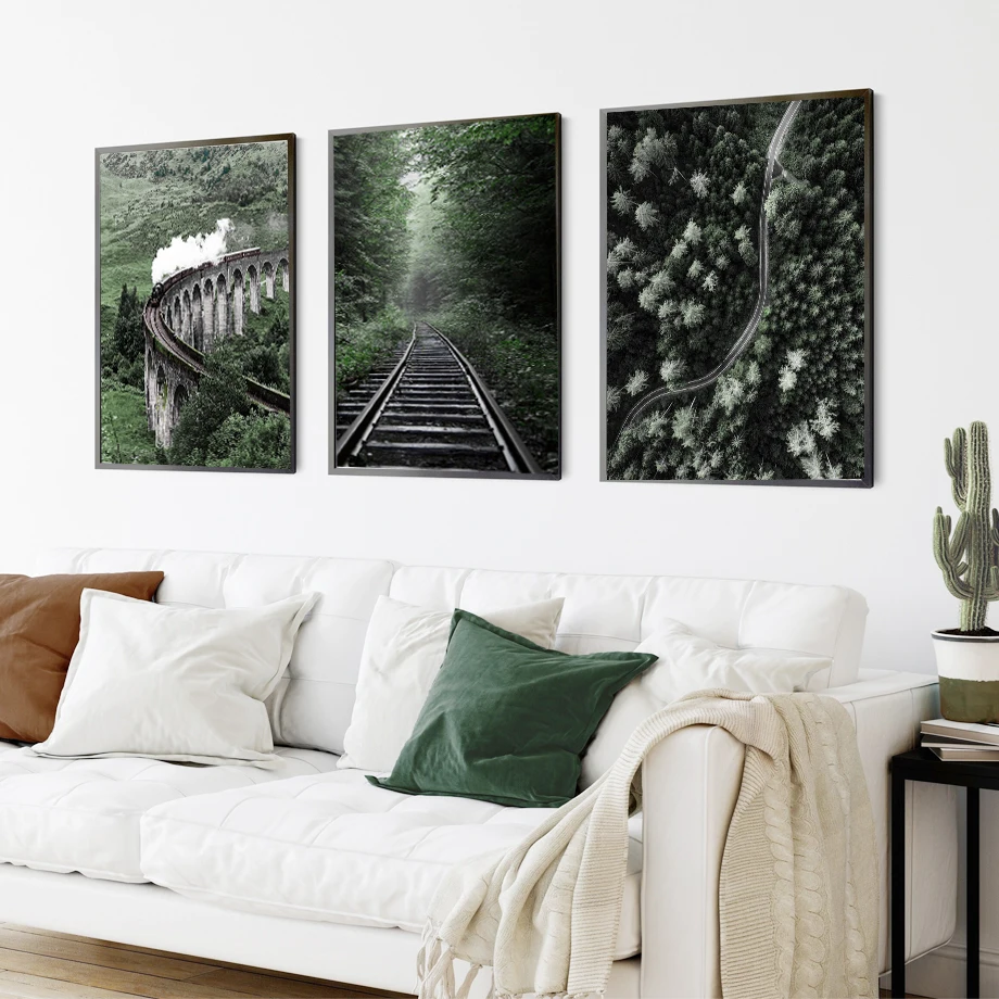 Поезд эвкалипт гигантское дерево Зеленый Горный пейзаж холст картин...