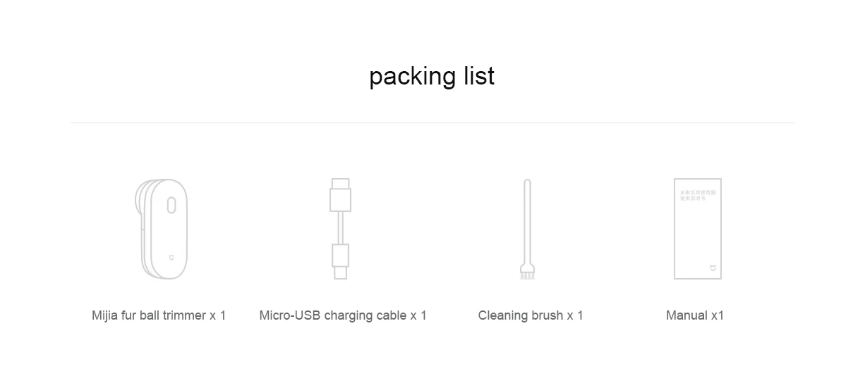 1x средство для удаления ворса Mijia1x линия зарядки Micro-USB1 чистящая щетка