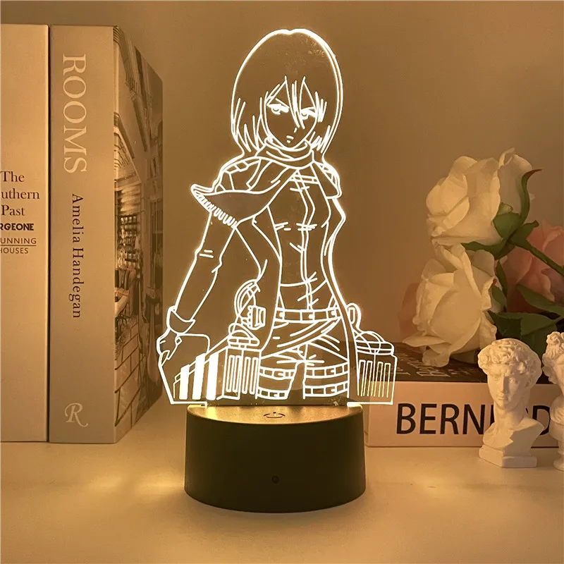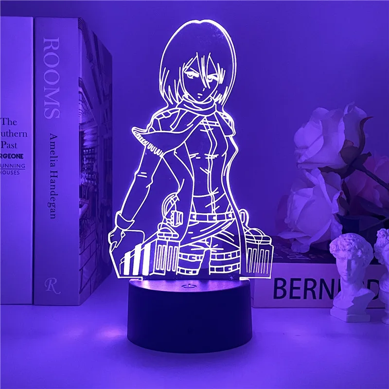 Ночник 3d атака на Титанов Mikasa фигурка Акермана светильник для девочек, декоративсветильник освещение для спальни, светодиодный светильник с Usb-аккумулятором, приз за события