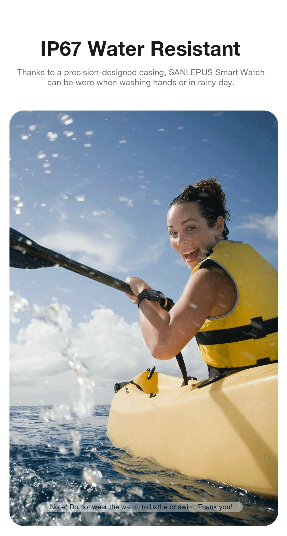 Благодаря точному дизайну корпуса умные часы SANLEPUS можно носить при мытье рук или в дождливый день.Примечание * не носите часы, чтобы купаться или плавать. Спасибо!