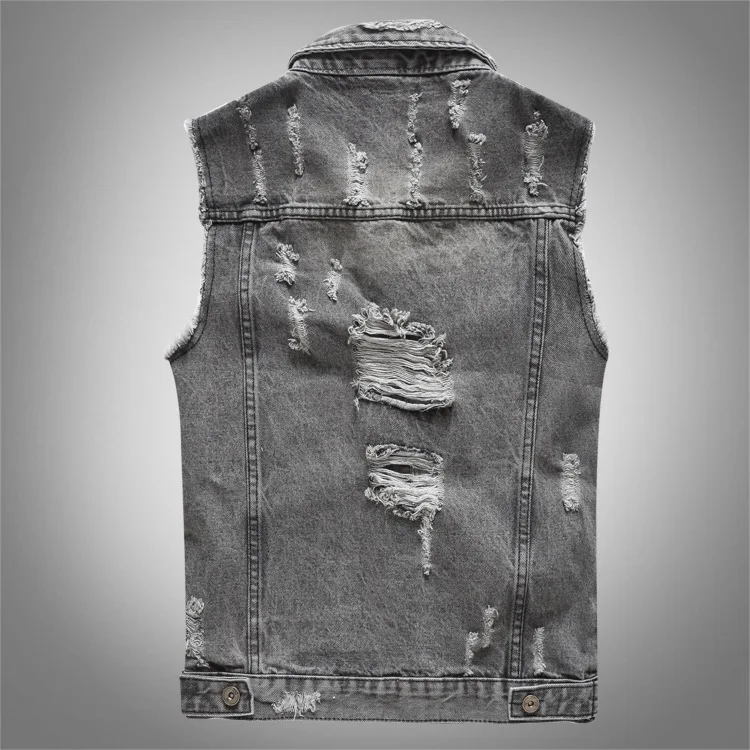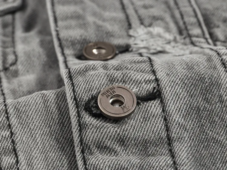 Мужская рваная джинсовая куртка, Повседневная мотоциклетная джинсовая куртка серого цвета с лацканами, весна-лето-осень 2021