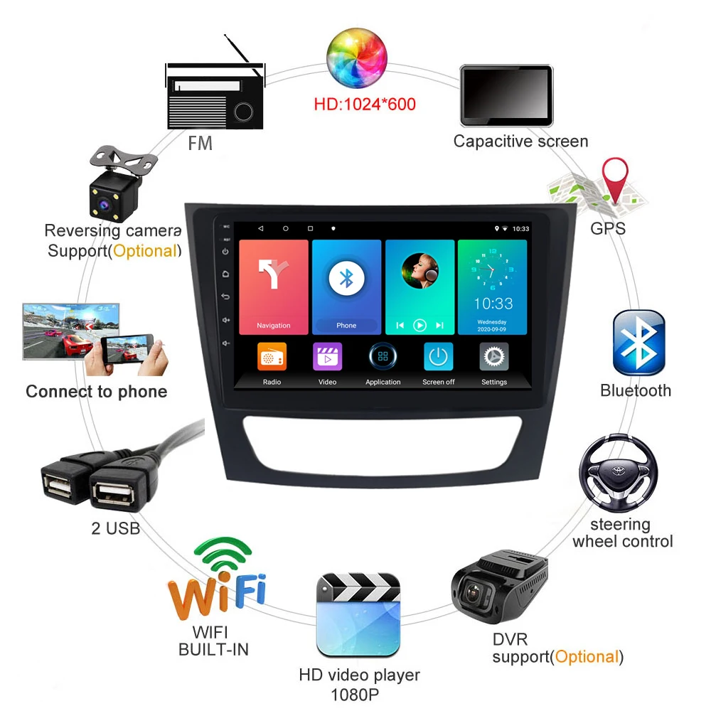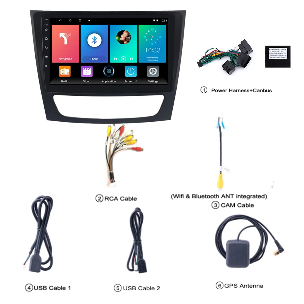 CarPlay Автомагнитола Магнитола Мультимедиа автомобиля Eastereggs 2Din Android для Benz E-class W211, E200, E220, E300, E350, E280, CLS, CLASS W219 2002-2010, Wi-Fi, GPS-навигация, FM, BT, стерео