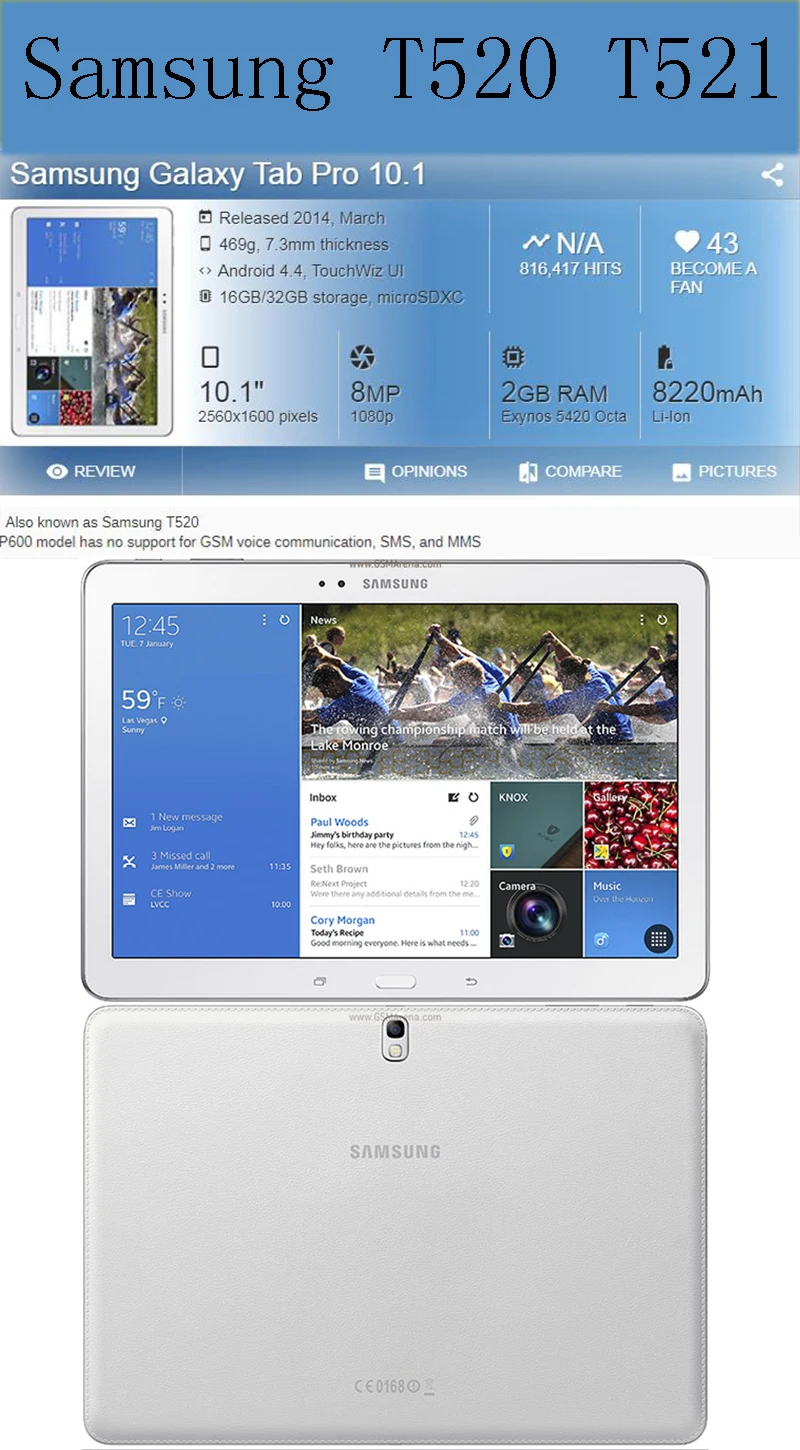 Модельная совместимостьTab pro 10.1 T520 T521