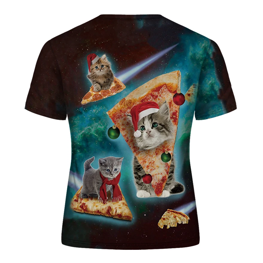 Лето 2021, новинка, космическая 3D футболка, Забавные топы с милым котенком, кошкой, съемом пиццы, футболка, летние рубашки с коротким рукавом