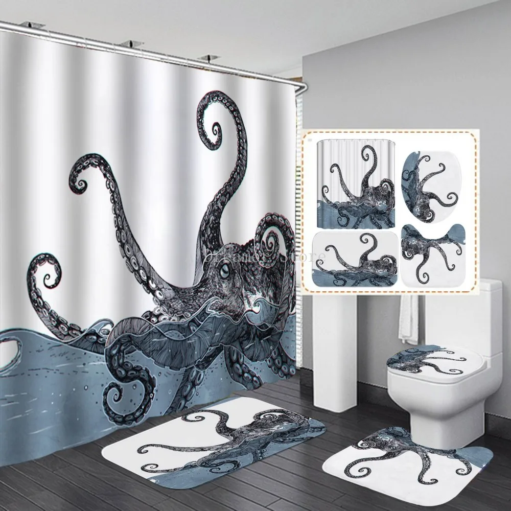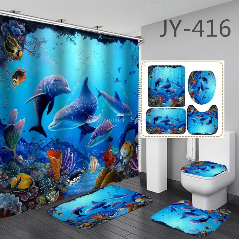 Модная трехмерная занавеска для душа с дельфином, набор с животными, медведем, зелеными растениями, водонепроницаемый тканевый Декор для ванной с крючками, занавески для ванной