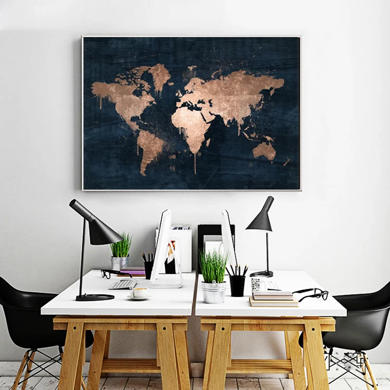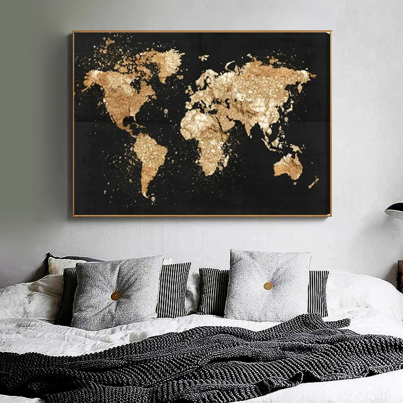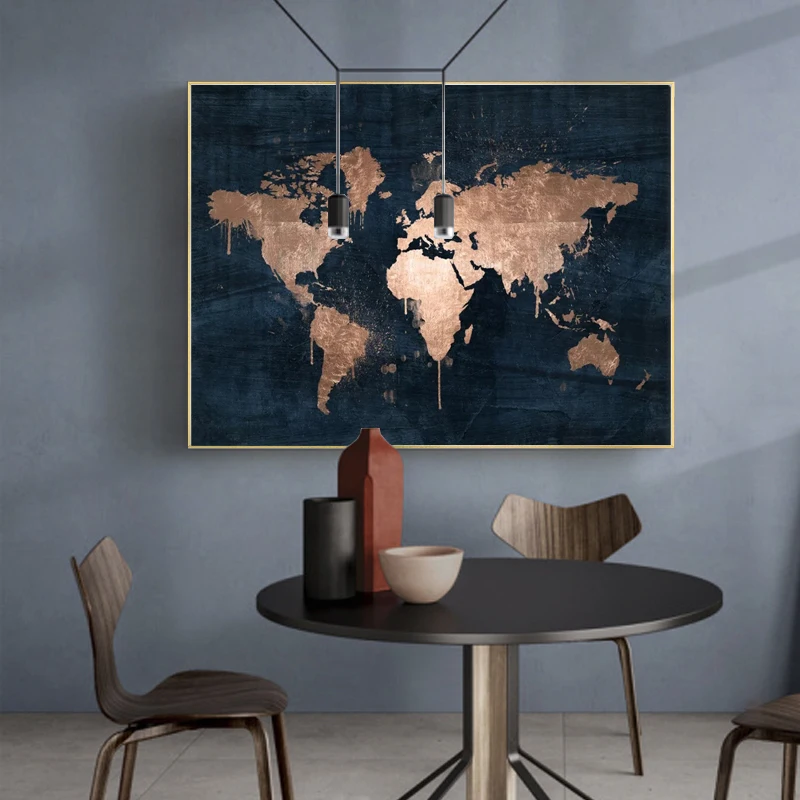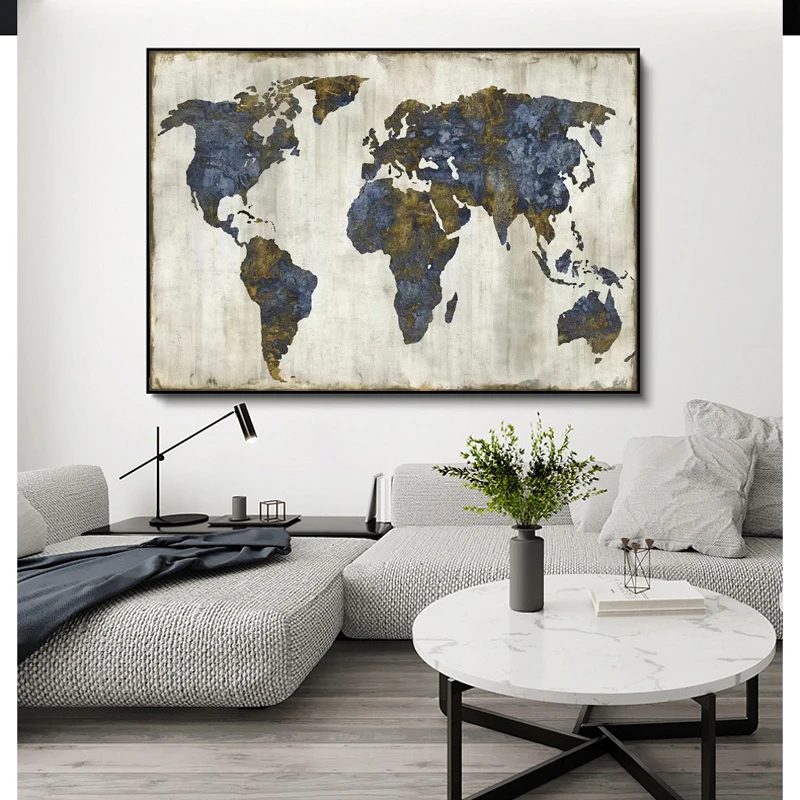 Картина квадратная на холсте HD, скандинавский Настенный декор, абстрактная карта мира, современные картины для украшения гостиной