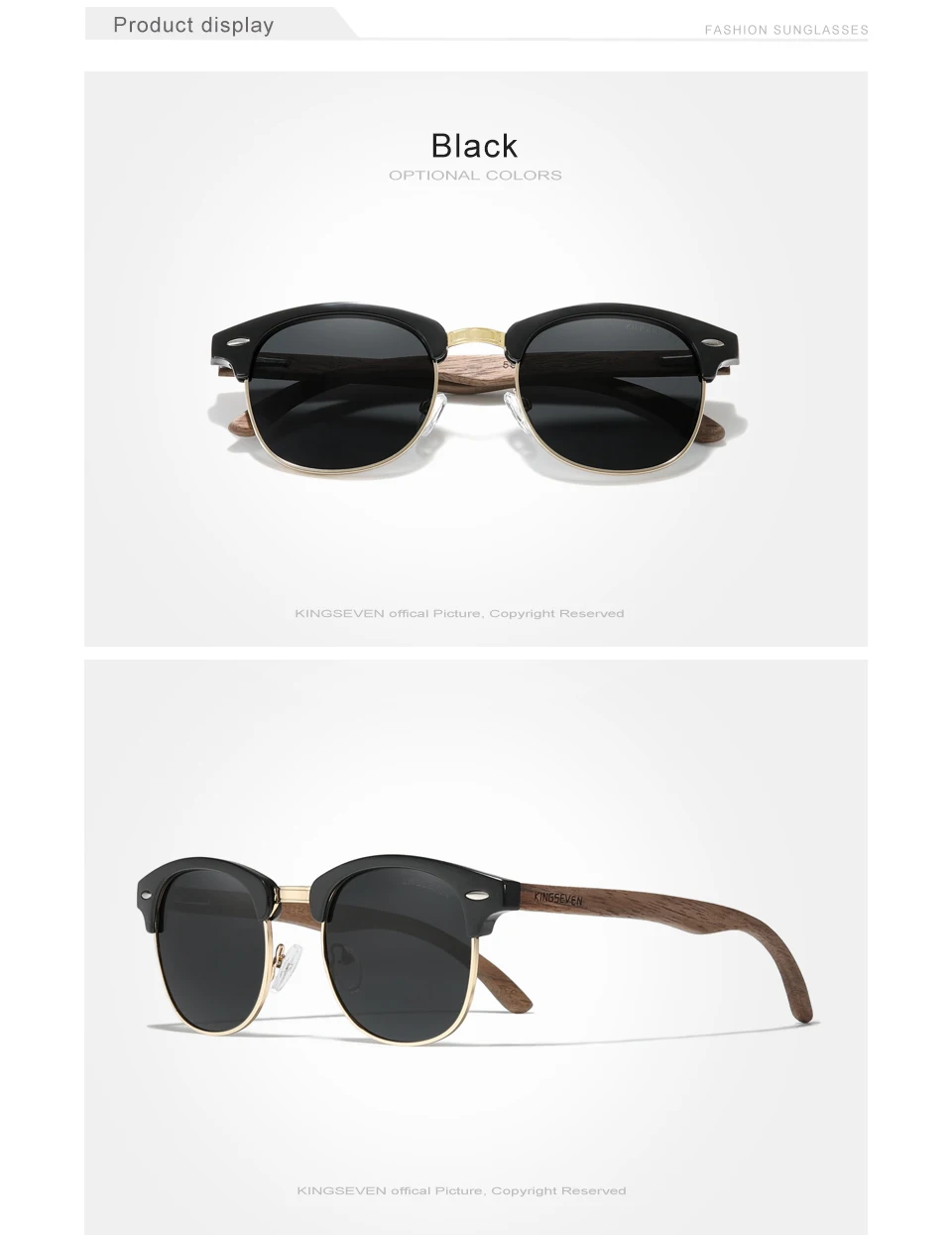 Солнцезащитные очки KINGSEVEN, черные, деревянные, ручной работы, 100% поляризационные, с линзами UV400, без оправы, в стиле ретро