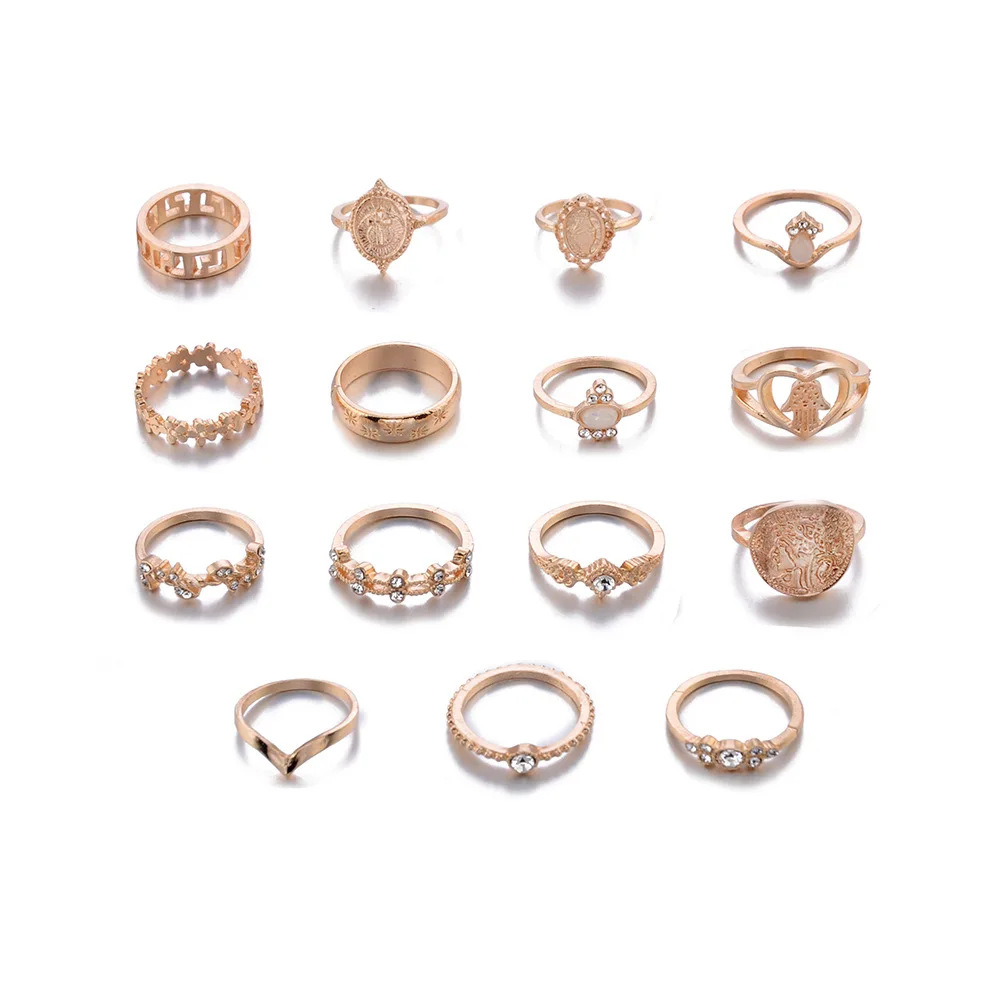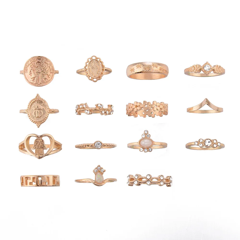 15 шт.компл. Винтаж монета с портретом Стразы в форме сердца, любовь бусины кольцо комплекты в стиле панк ювелирные изделия вечерние кольца для женщин Подарки