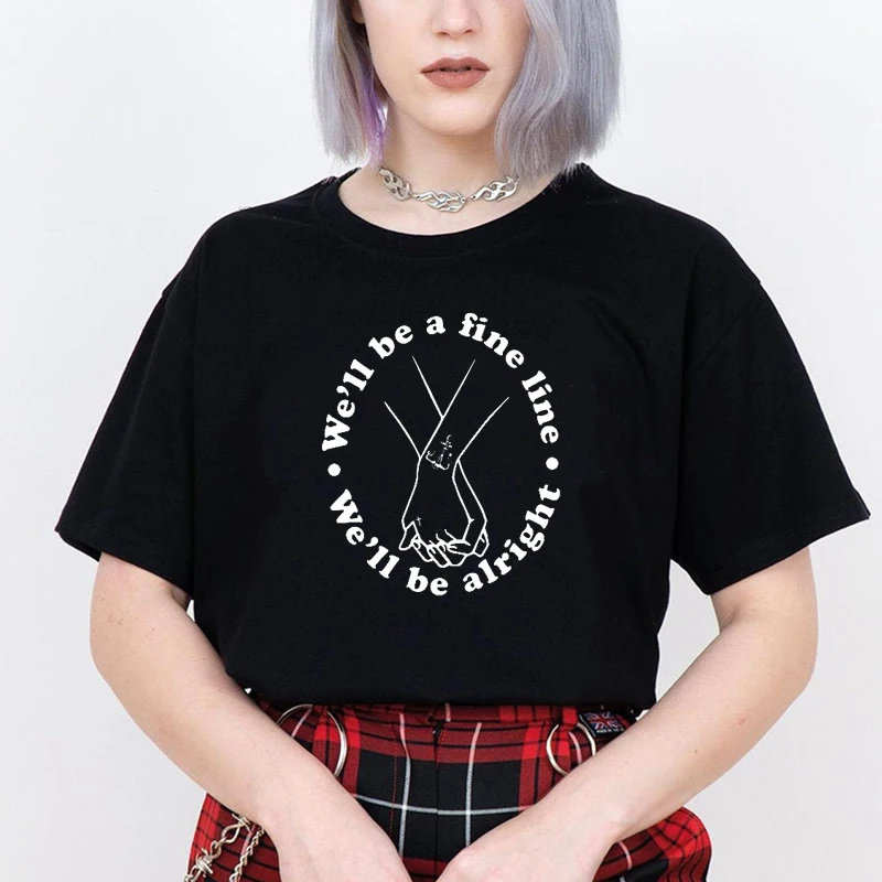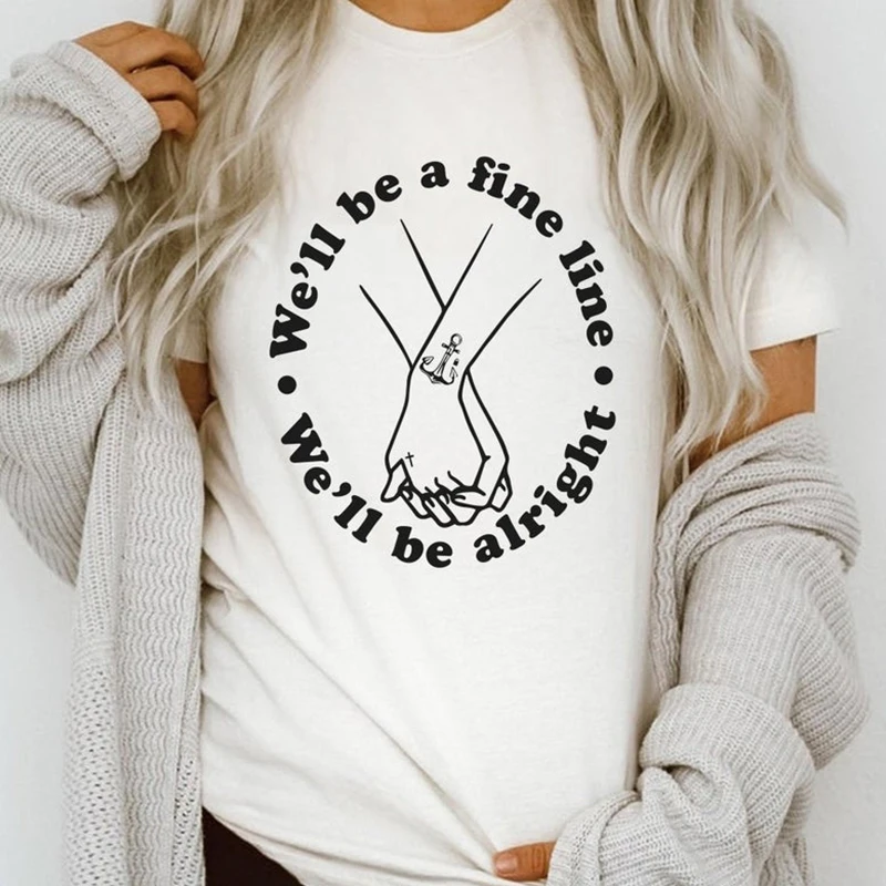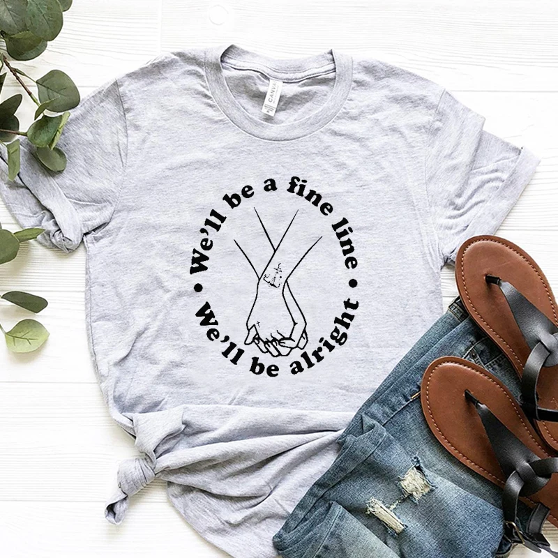 Женская хлопковая Футболка с принтом We'll Be A Fine Line, с надписью We'll Be OK, модный топ из размера плюс хлопка, Прямая поставка