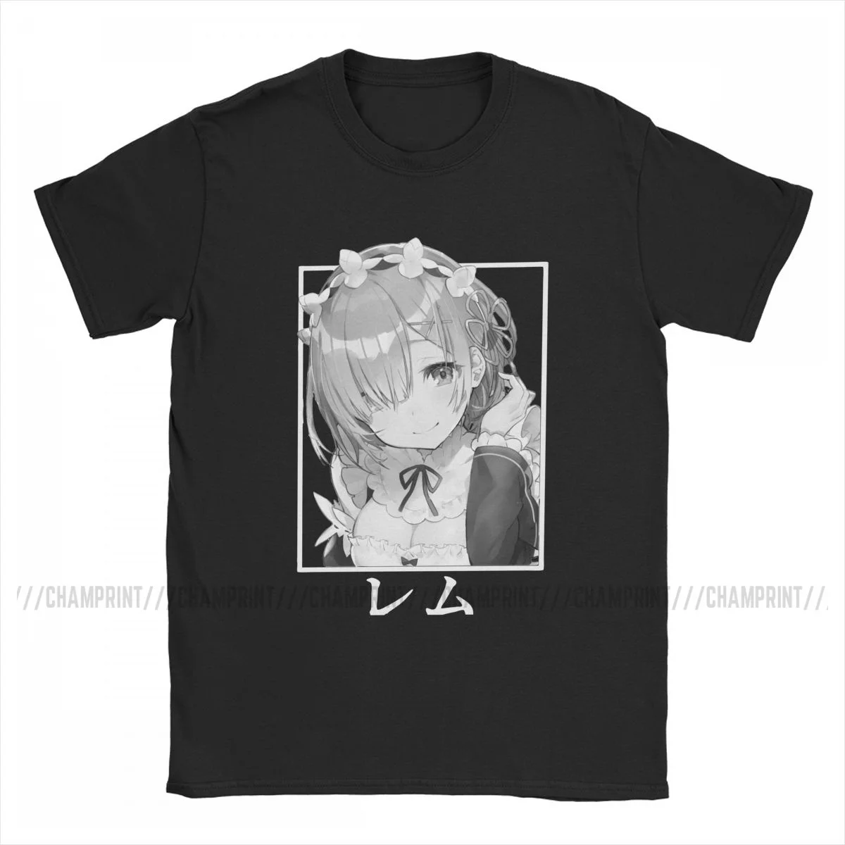 Футболка Rem ReZero мужская с круглым вырезом, винтажная тенниска из 100% хлопка с принтом Аниме Манга, майка с коротким рукавом, идея для подарка