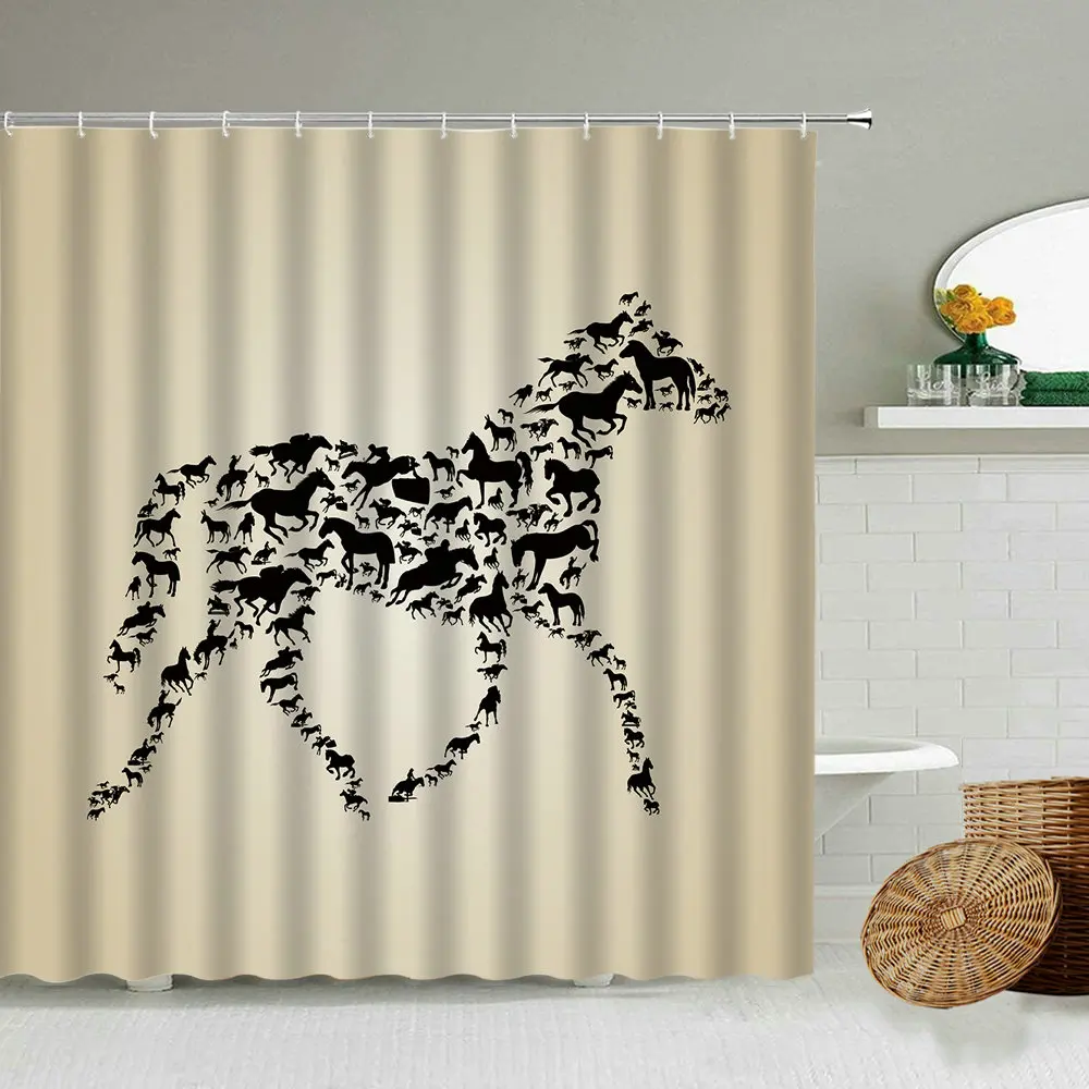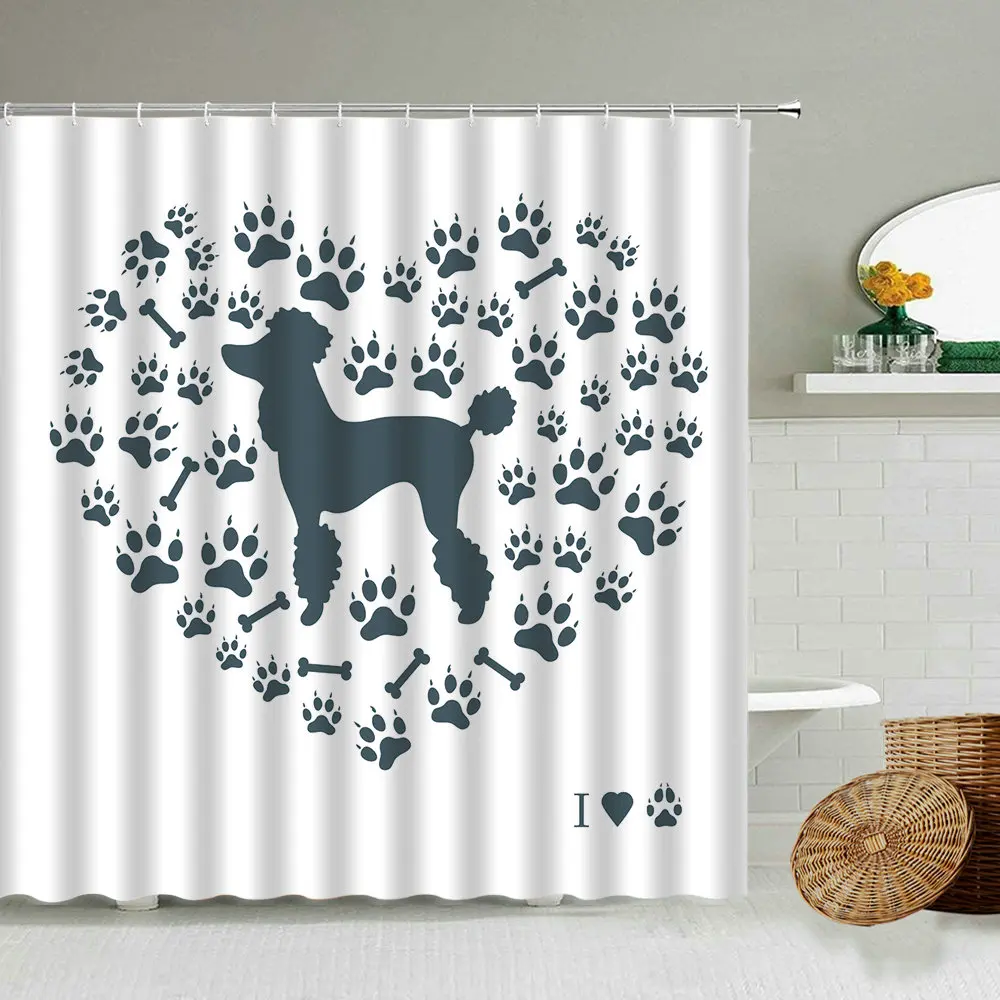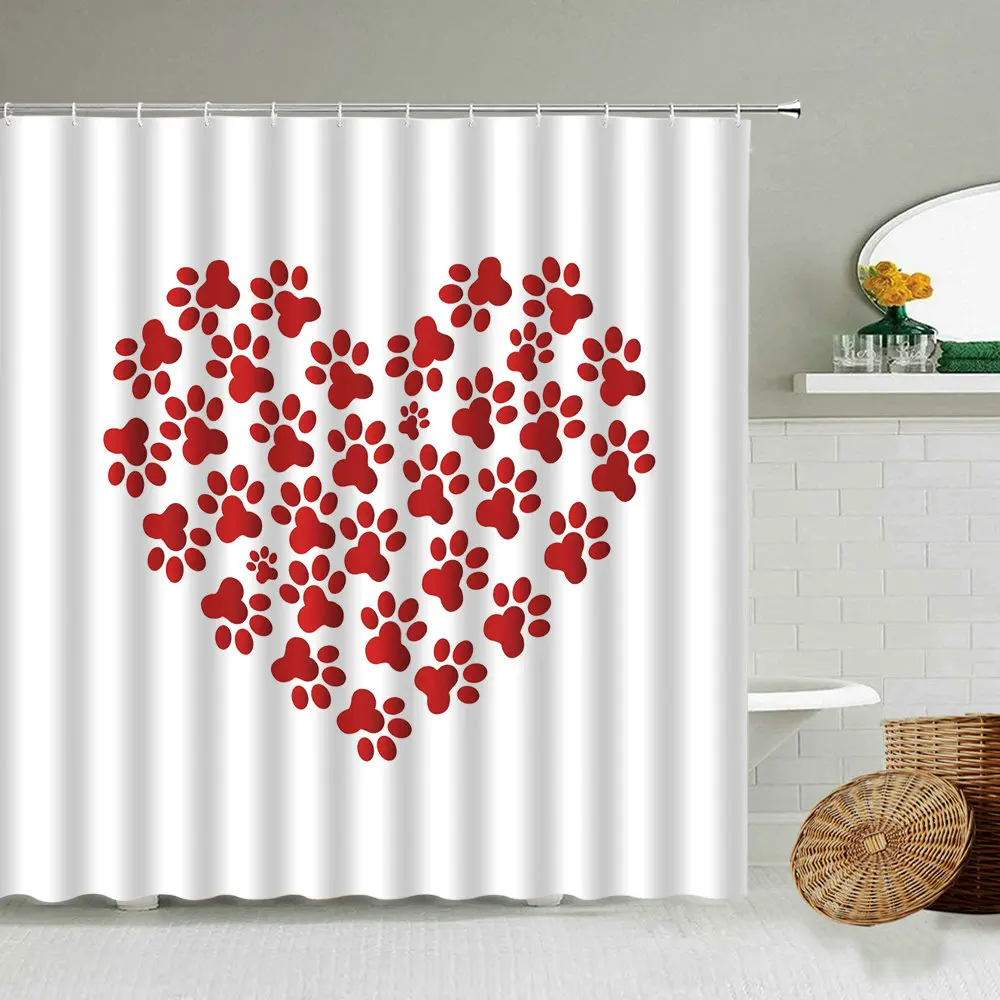 Мультфильм Забавный животное собака кошка лошадь следы Любовь Сердце шаблон душ занавеска белый фон для детской ванной водонепроницаемый экран